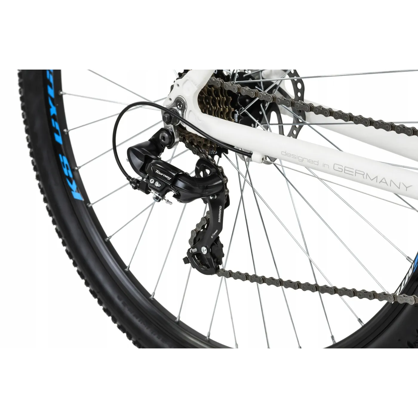 Rower marki KS Cycling w kolorze chłodnej matowej bieli z czarnymi napisami. Jego rama została specjalnie zmniejszona do rozmiaru 19 cali oraz wzmocniona tak, że konstrukcja jest w stanie wytrzymać silne wstrząsy. By jazda na nim była jeszcze bardziej komfortowa, zadbano o jego lekkość i niską wagę, dzięki aluminiowemu wykonaniu. Do tego ergonomiczne siodełko i każda przejażdżka staje się prawdziwą przyjemnością