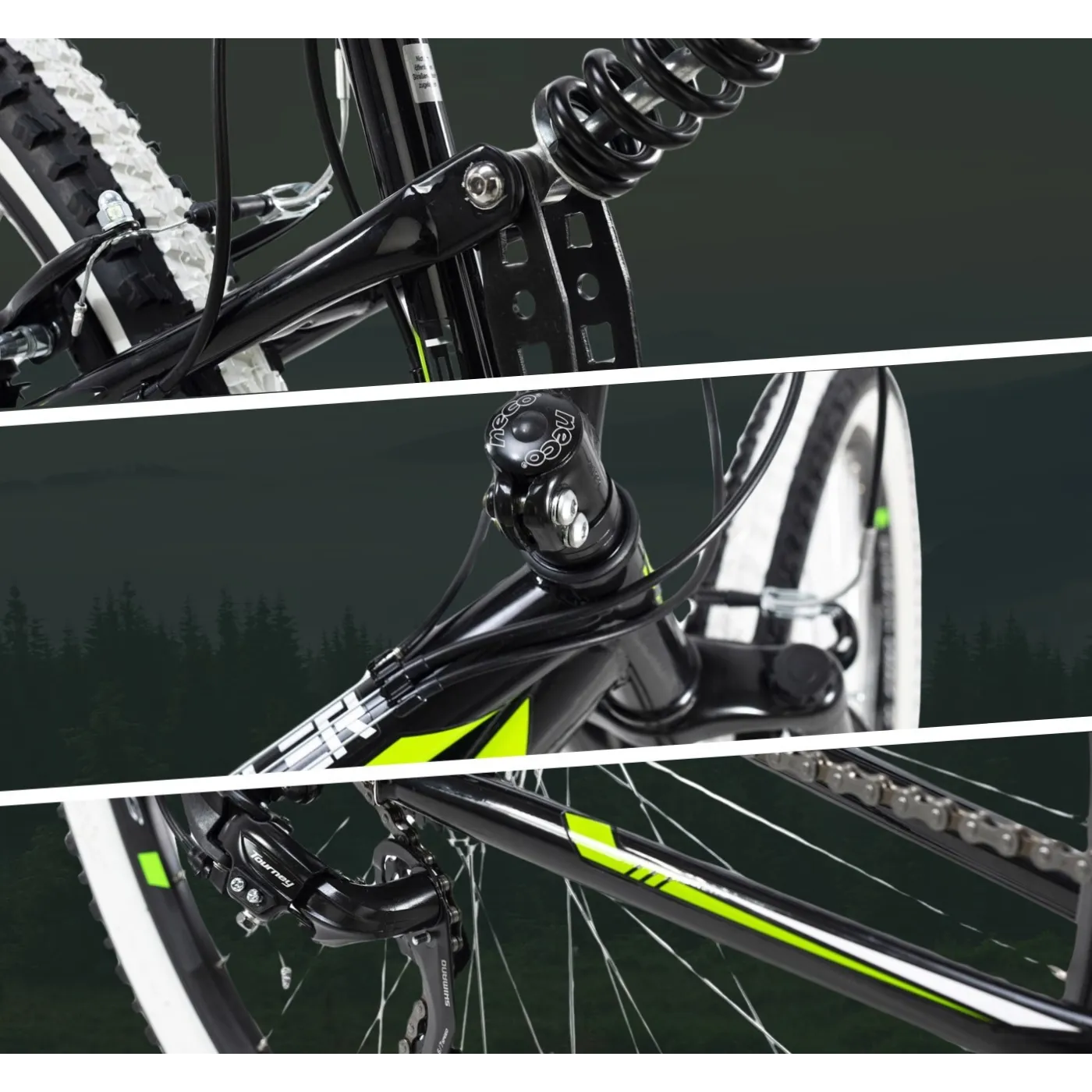 ✔️ Dodatkowym atutem roweru KS Cycling Scrawler jest amortyzacja zarówno z przodu, jak i z tyłu, co absorbuje wstrząsy i nierówności terenu, zapewniając komfortową jazdę nawet na najbardziej wyboistych trasach. Dzięki temu rower ten sprawdzi się zarówno podczas długich wycieczek po górach, jak i podczas adrenalizujących zjazdów po stromych zboczach.