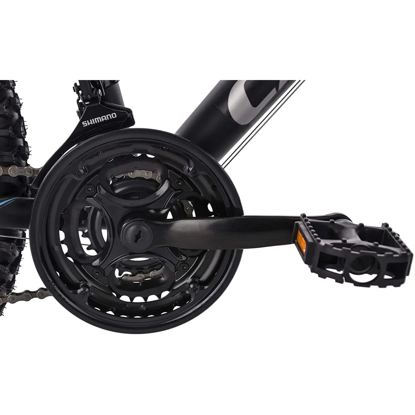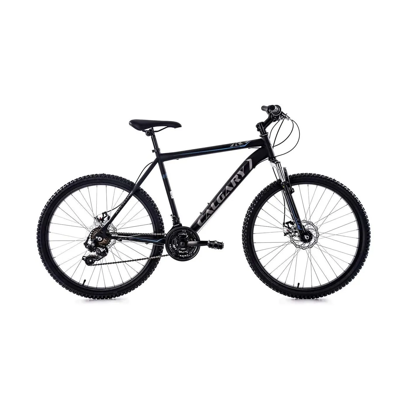 Klasyczny i sportowy rower Calgary uzupełniają szaro niebieskie elementy. Wyposażony jest w 21 biegów Shimano, zmienianych za pomocą obrotowej manetki Microshift oraz hamulce tarczowe, dzięki czemu jest bezpieczny w różnych warunkach i zróżnicowanym terenie. 26 calowe koła pozwalają zachować pełną kontrolę nad rowerem, a wysoka rama jest wygodna dla wyższych osób. Dodatkowo rower posiada amortyzowany widelec, który niweluje nierówności.