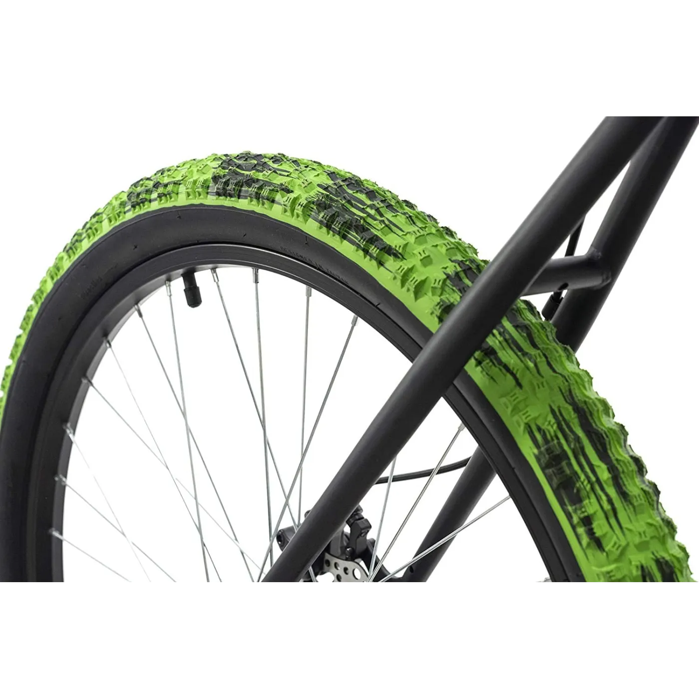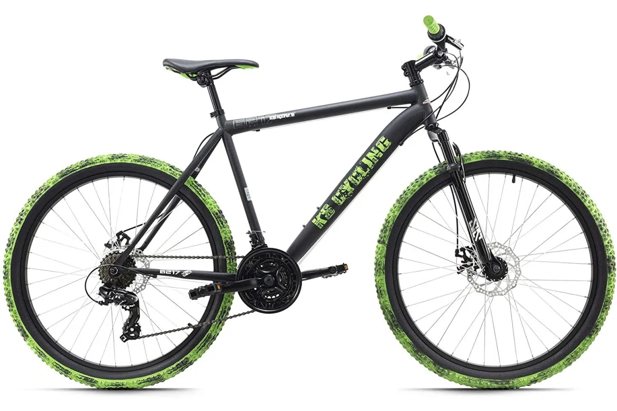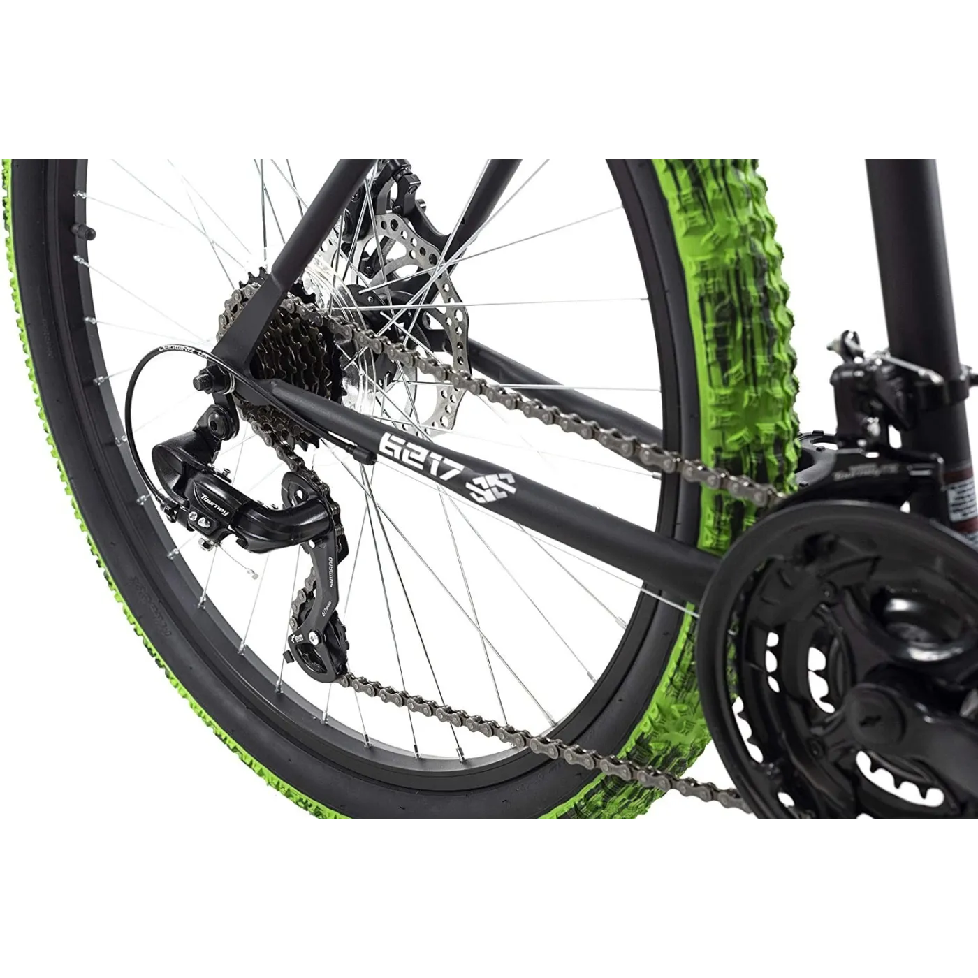 Zawsze gotowy do zabawy na trasie - czarny matowy rower górski CRUSHER firmy KS Cycling zawsze dobrze prezentuje się dzięki dodatkom w kolorze zieleni i efektem „przybrudzenia”. Każdy rower jest absolutnie wyjątkowy.