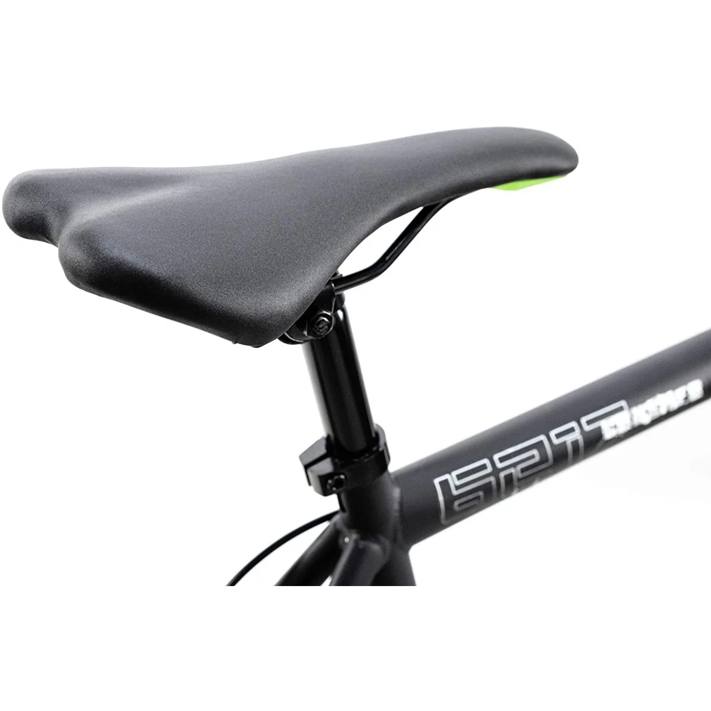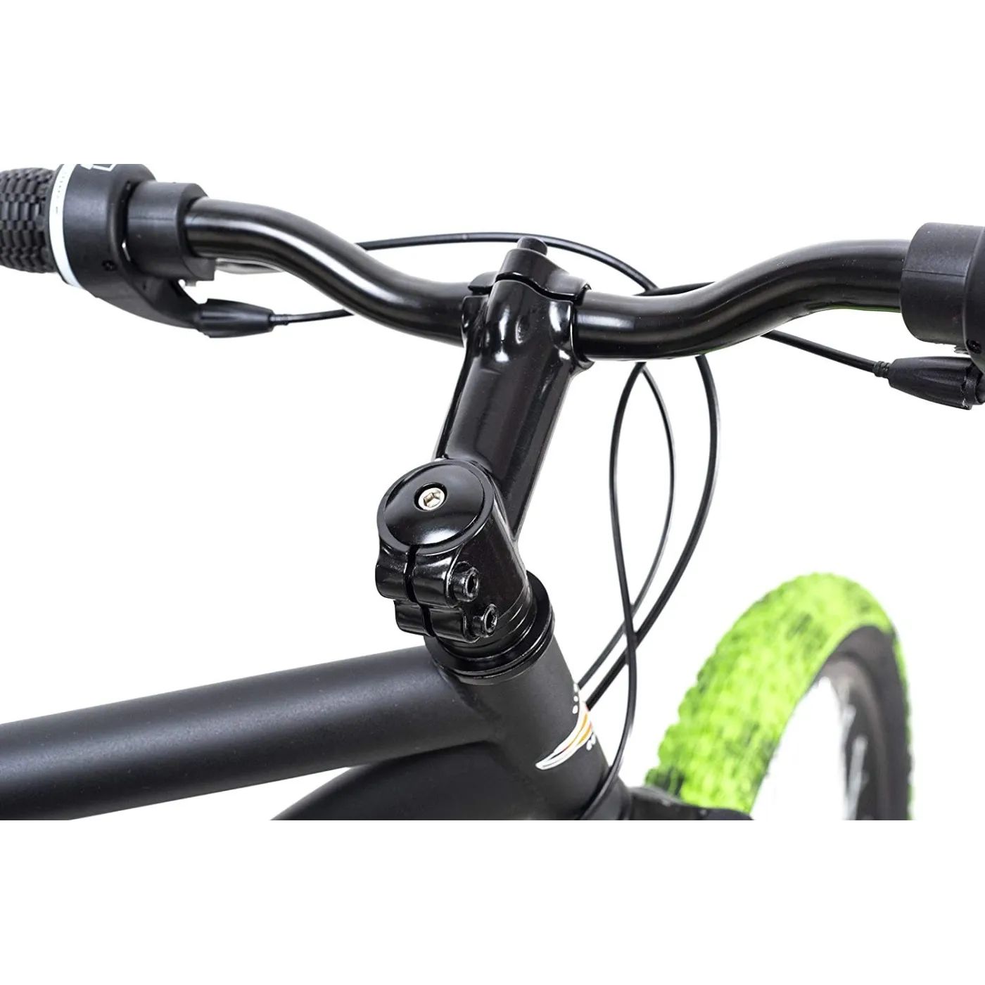 Wyposażony jest w 21-biegową przerzutkę z obrotową manetką oraz mechaniczne hamulce tarczowe z przodu i z tyłu, które zapewniają niezbędne hamowanie. Do tego ergonomiczne siodełko MTB, które idealnie pasuje do całości. obrazu.