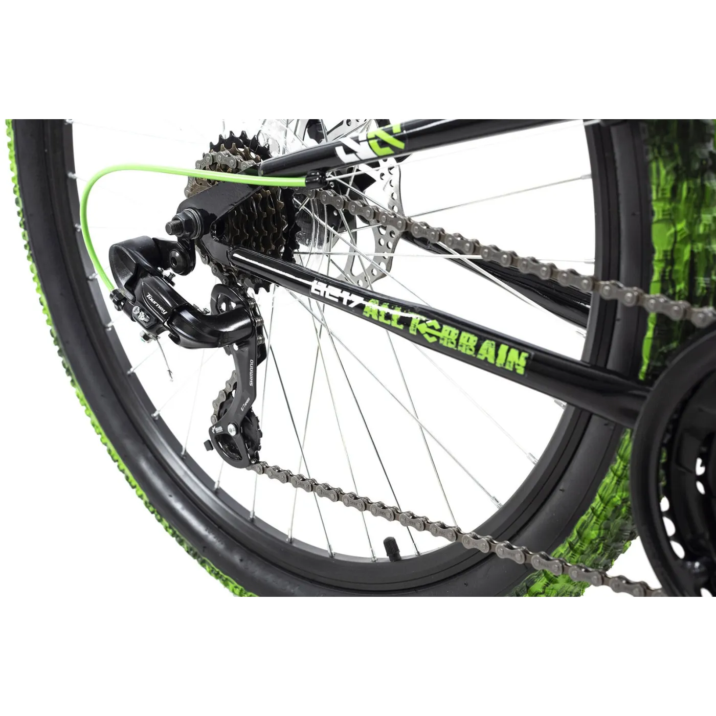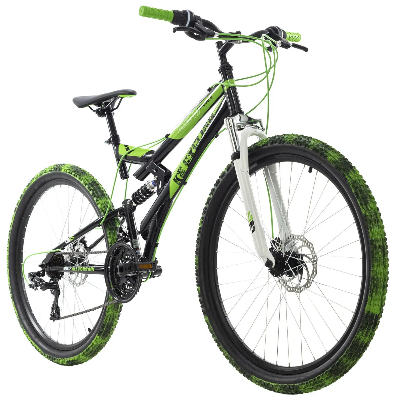 26-calowy rower Fully-MTB CRUSHER firmy KS Cycling został zaprojektowany z jasnozielonymi detalami w fajnym wyglądzie „Destroyed”. Opony z kolcami w kolorze Muddy Green są również imponujące: malowanie zostało naniesione ręcznie na każdy egzemplarz osobno - dlatego każdy jest absolutnie wyjątkowy!
