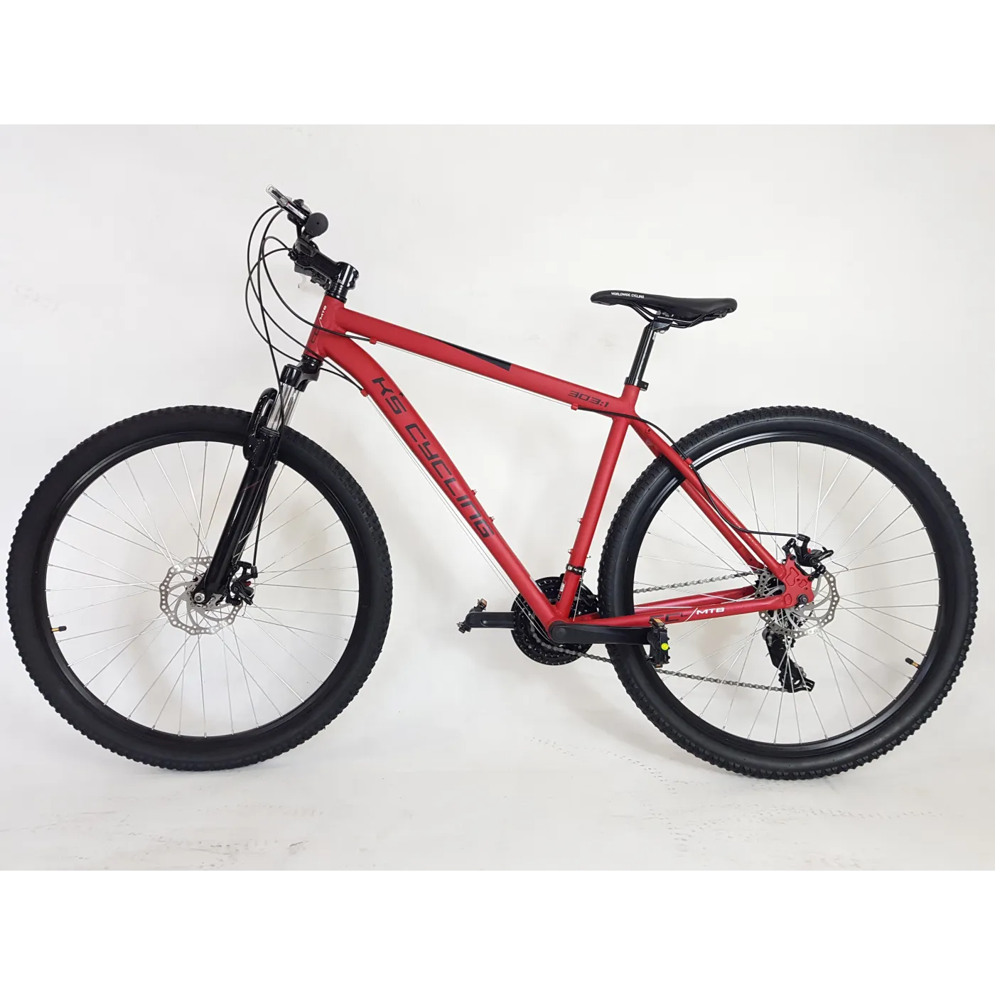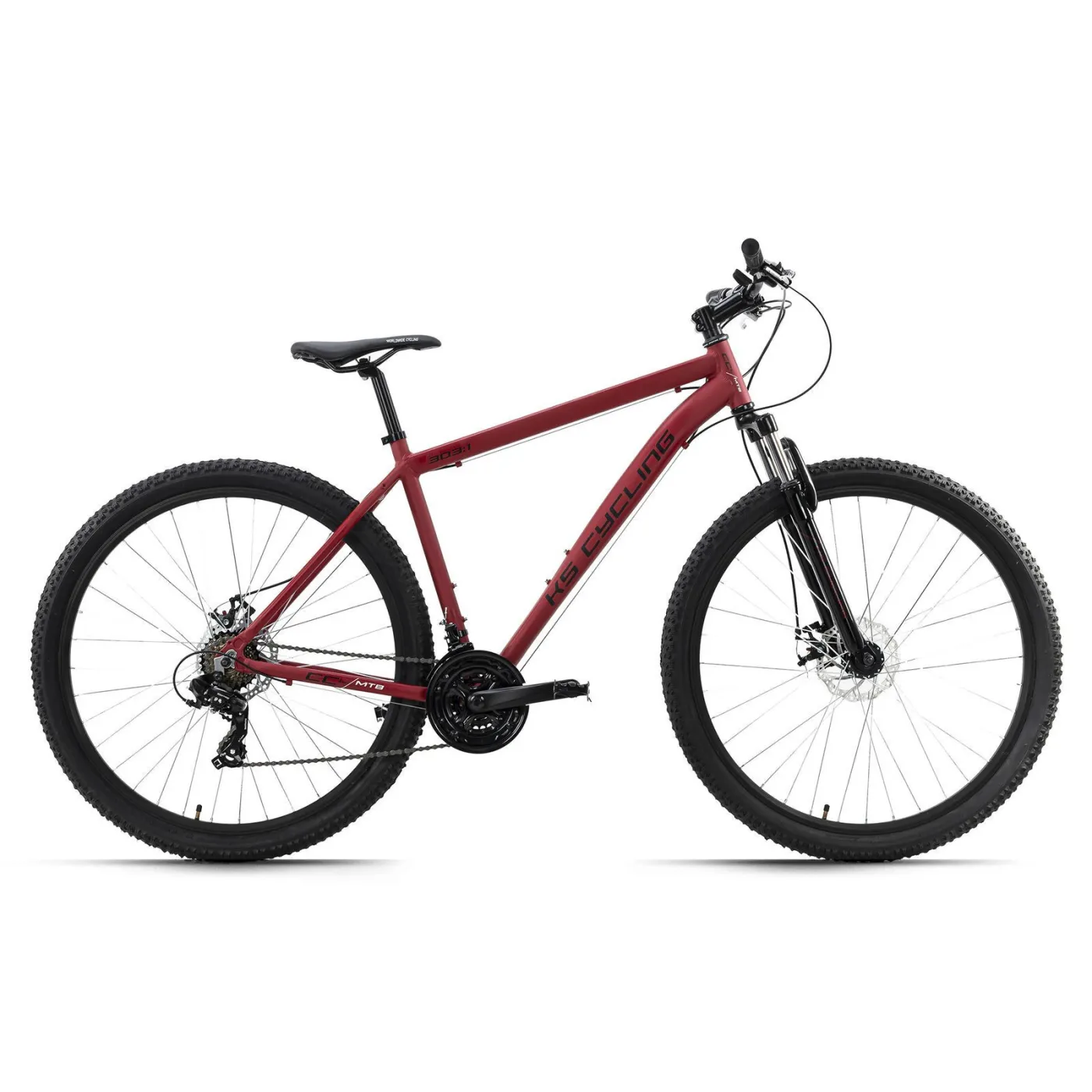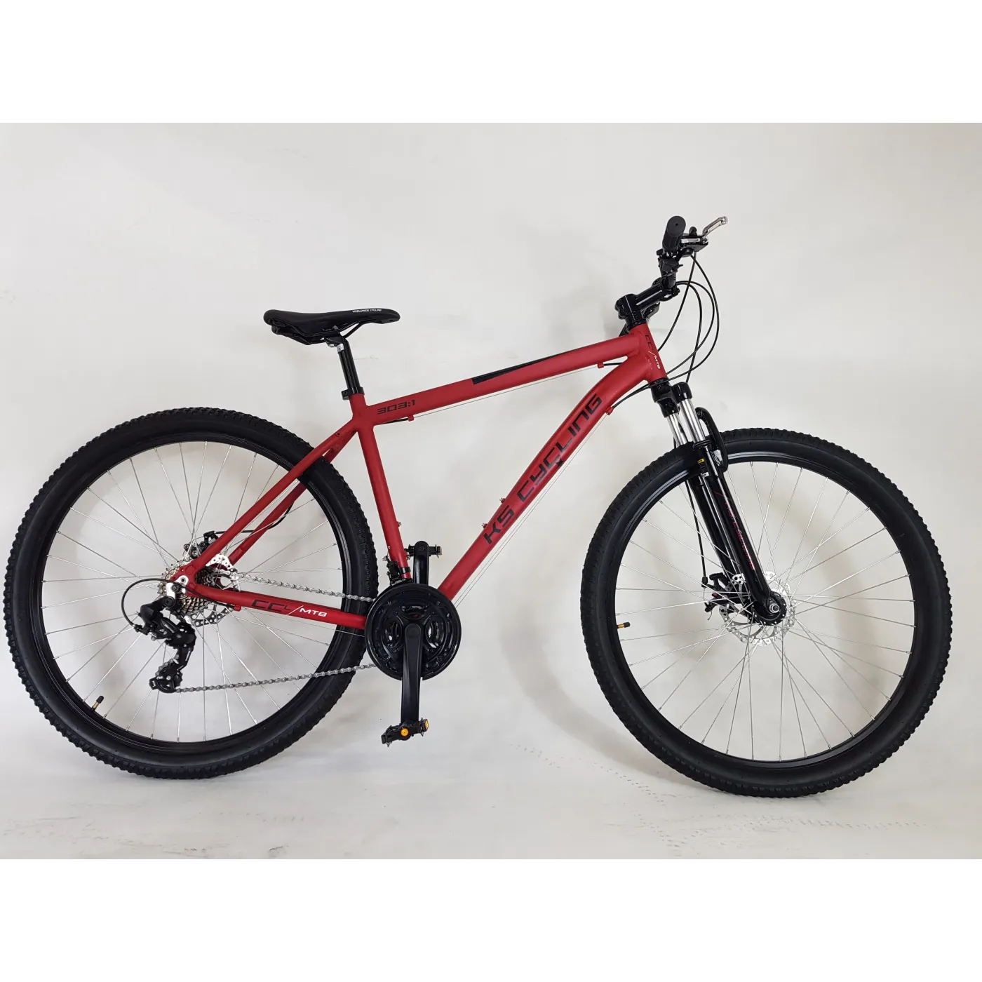 Lekki rower górski typu hardtail CCL303 firmy KS Cycling zachwyca nowoczesnym designem i przyciąga wzrok! Imponuje również wyposażeniem, ponieważ oprócz ramy, z aluminium wykonane są także obręcze, korby, sztyca i mostek, dzięki czemu MTB jest lekki. Rower wyposażony jest w 21-biegową przerzutkę firmy SHIMANO, a mechaniczne hamulce tarczowe z przodu i z tyłu zapewniają niezbędne hamowanie. Ergonomiczne siodełko MTB idealnie pasuje do całości i można je łatwo regulować.