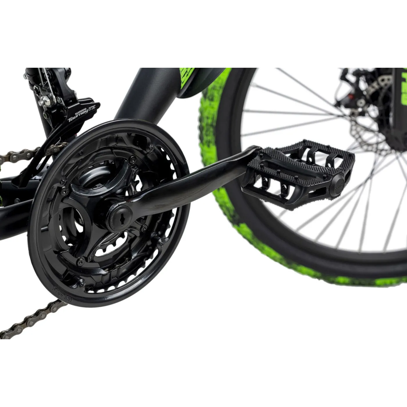 MTB Bliss zapewni Ci komfort, wygodę i bezpieczeństwo podczas każdej górskiej wycieczki. Wszystko to dzięki wygodnemu siodełku oraz amortyzacji wzmocnionej ramy, która pozwoli zachować kontrolę nawet na wyboistych drogach. Dwa hamulce tarczowe, 21-biegowe przerzutki SHIMANO, a także niebanalna, mocna kolorystyka dodadzą Ci pewność podczas wymagających terenów. Opony Muddy Green również robią wrażenie: malowanie zostało nałożone ręcznie, a każda jest absolutnie wyjątkowa!