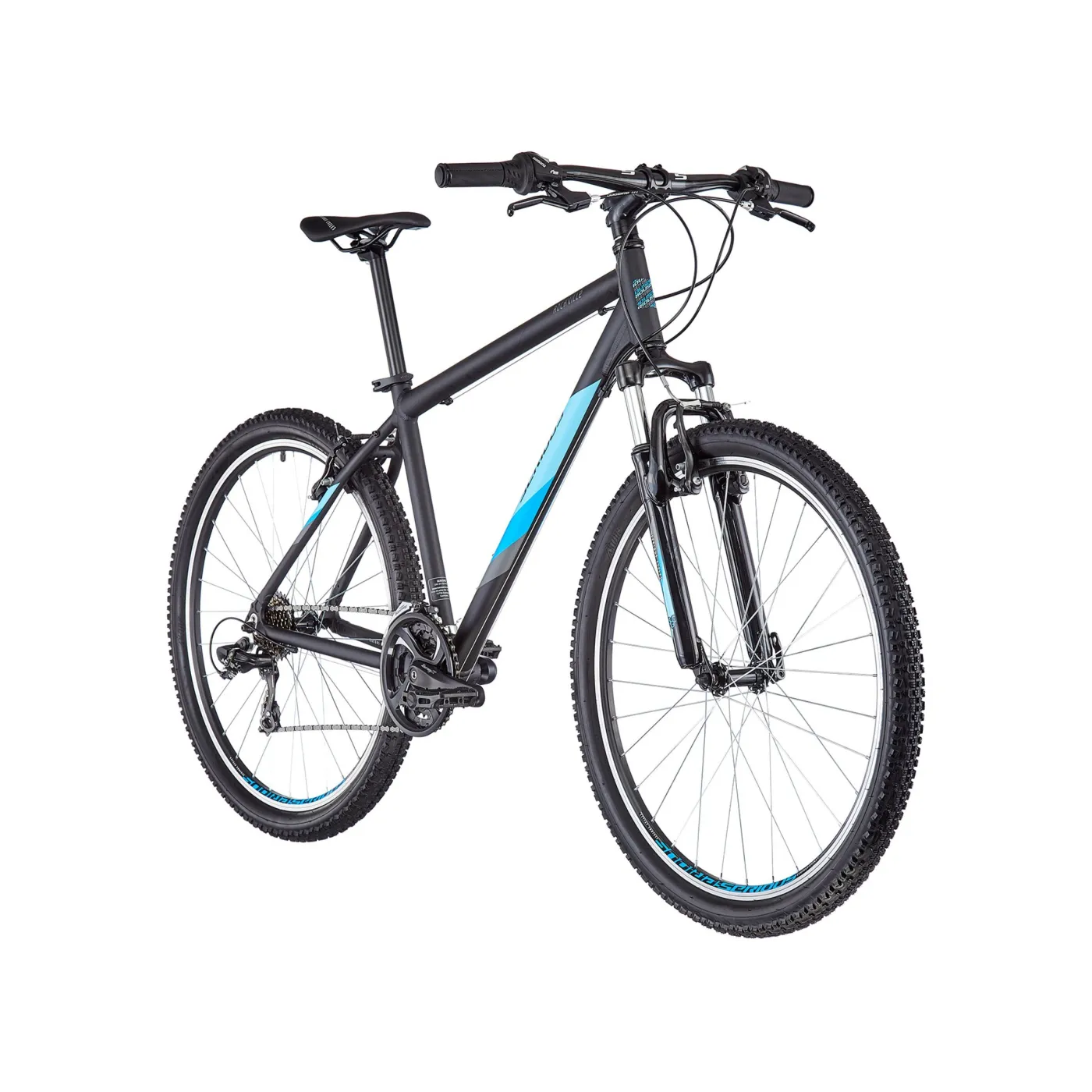 Sportowa wersja Rockville w czarno-niebieskiej kolorystyce to znakomity rower dla wszystkich, którzy chcą rozpocząć swoją przygodę z kolarstwem górskim.