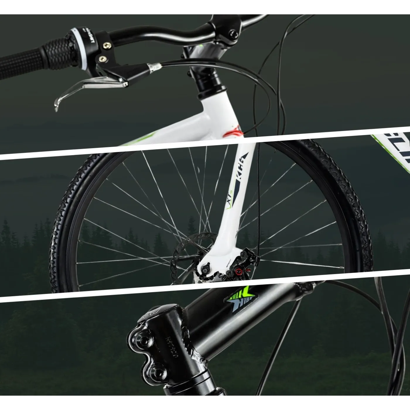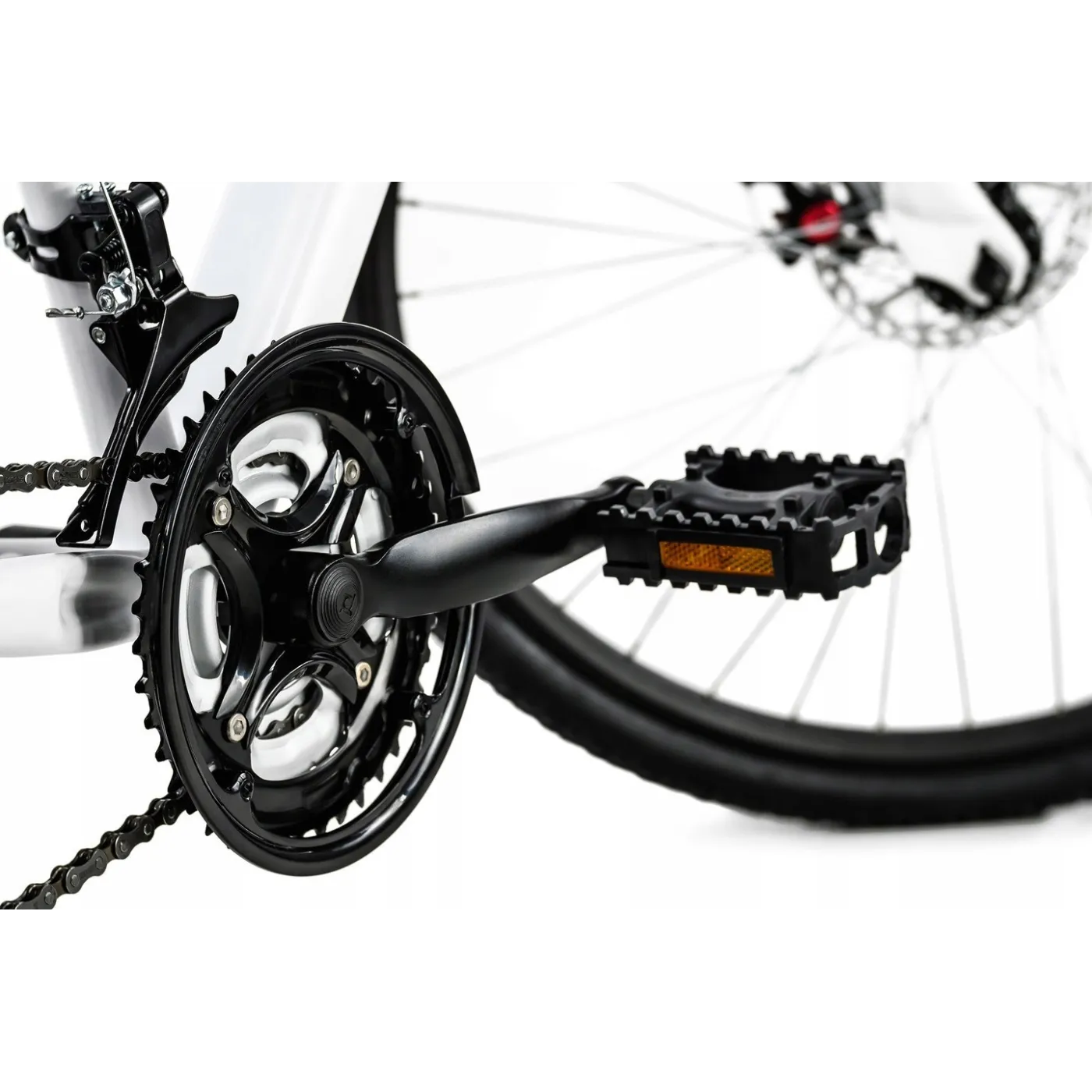 ✔️ Wyposażony jest w dwa hamulce tarczowe zapewniające skuteczne hamowanie w każdych warunkach. 21-biegowa przerzutka Shimano umożliwia płynną zmianę dostępnych przełożeniach, co pozwala dostosować jazdę do różnych terenów.