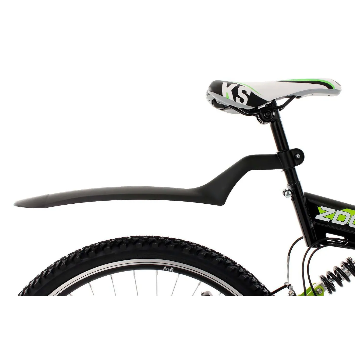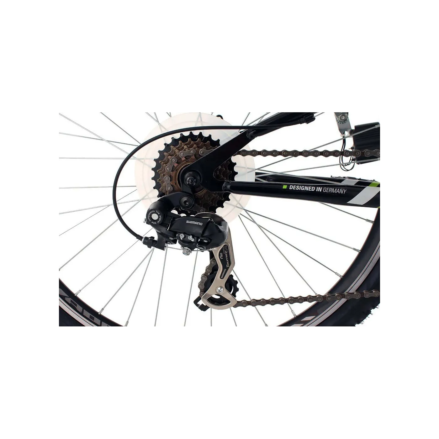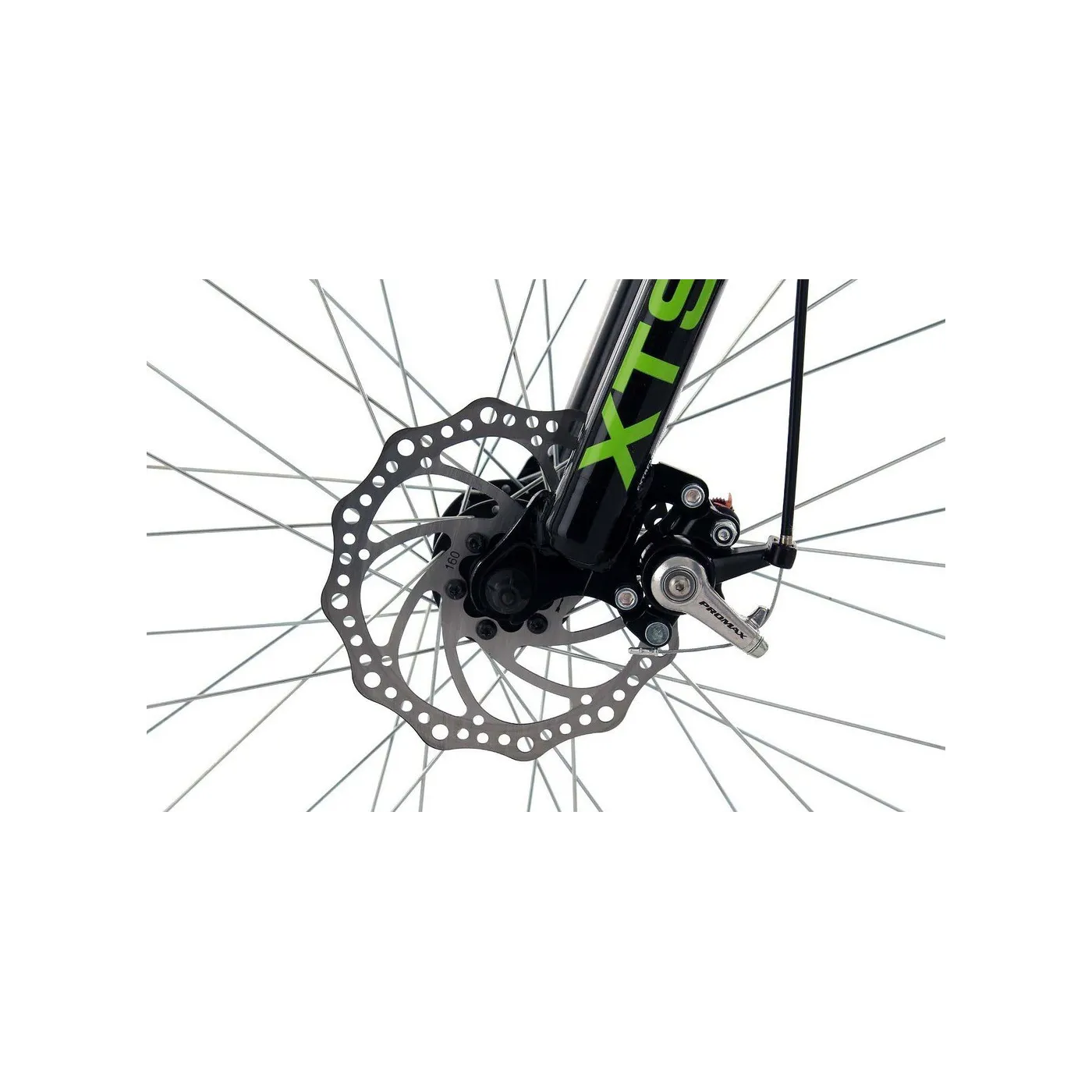 Rower koloru czarnego, któremu zniewalający efekt dają wstawki koloru zielonego. Dodatkowo rama wykonana w nietypowy sposób fantastycznie się komponuje i wpada w oko. Solidne elementy, tylne zawieszenie i amortyzowany widelec zapewniają komfort i bezpieczeństwo.