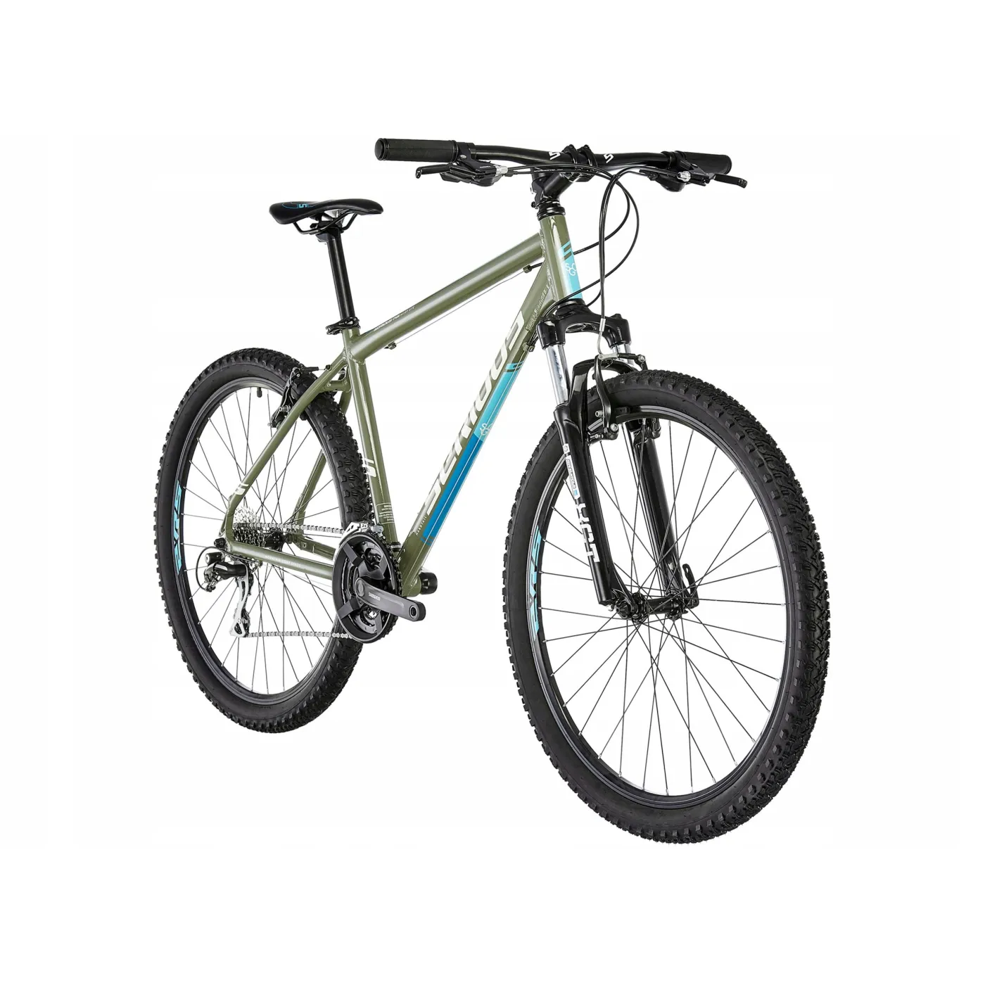 Konstrukcja aluminiowej ramy to pewność sportowego, a zarazem kontrolowanego stylu jazdy. Sprawdzone komponenty od Shimano, takie jak 24-biegowy napęd zapewniają radość z jazdy na lata, a bezpieczeństwo i komfort w cięższym terenie oferują wysokiej klasy hamulce szczękowe typu V-brake oraz amortyzowany widelec Suntour z blokadą skoku. Dopełnieniem całości są stabilne koła, z którymi przemierzysz wiele kilometrów.