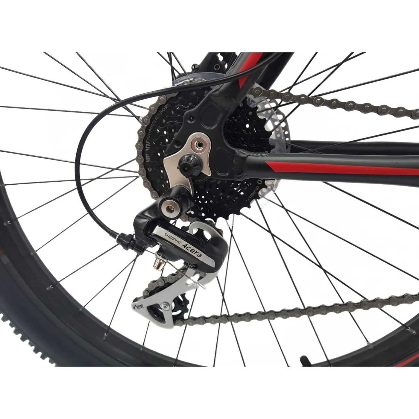 ✨ Oprócz ramy felgi, korby, sztyca i mostek są wykonane z aluminium i sprawiają, że rower jest lekkim wyścigowym MTB.