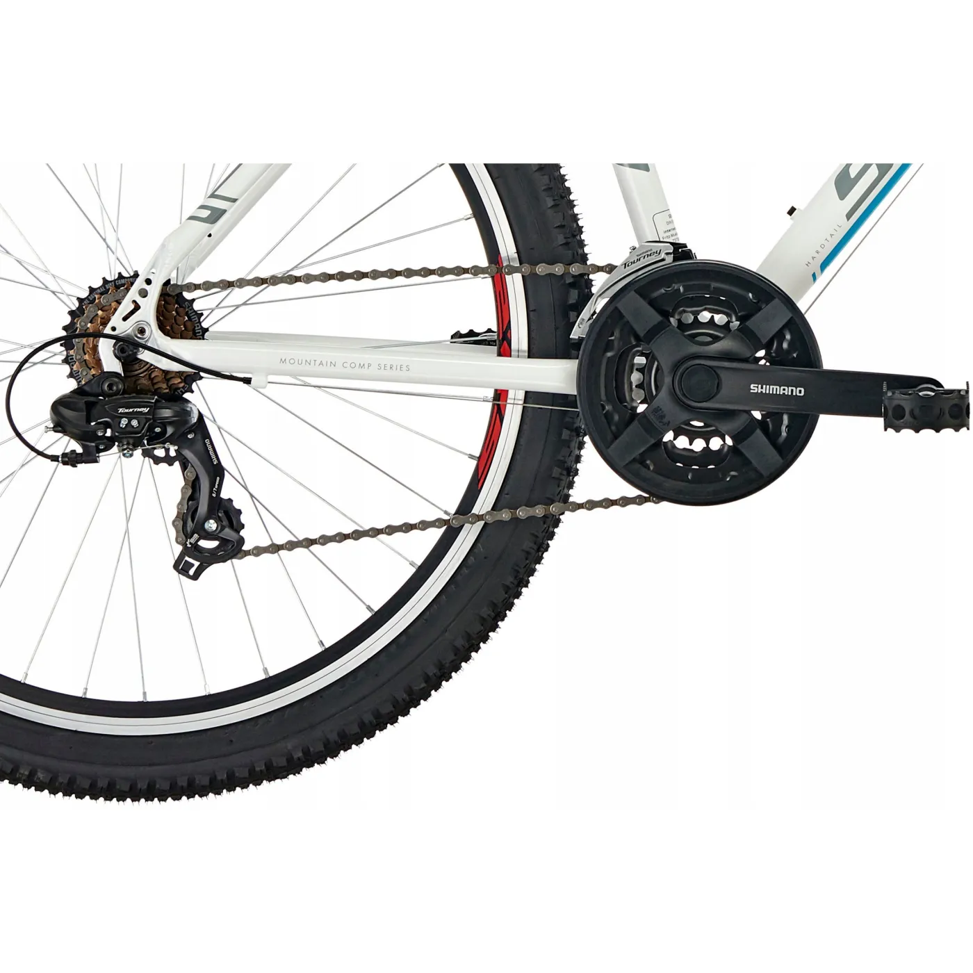 Lekka aluminiowa rama, a do tego doskonale dobrane wyposażenie oraz klasyczną konstrukcją o sportowym charakterze. Dzięki 21-biegowej przerzutce, którą można w łatwy sposób obsługiwać za pomocą manetek Shimano REVO, możesz szybko i dynamicznie przemierzać naturalne leśne szlaki lub zwykłe ścieżki rowerowe.