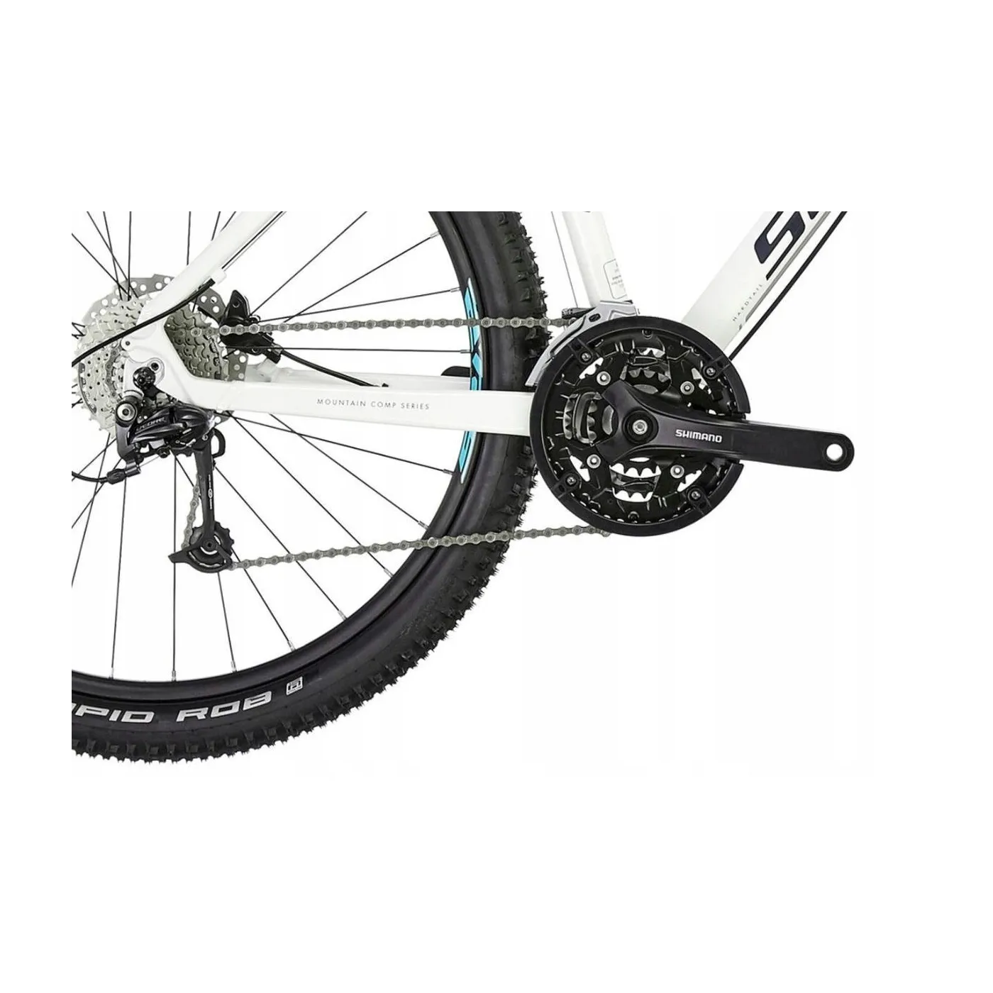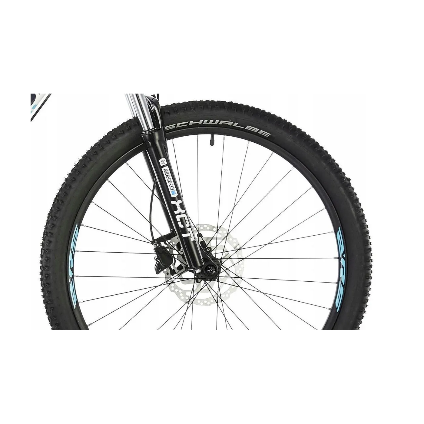 Biało niebiesko szary rower jest stworzony dla osób, które nie lubią wydawać fortuny, ale cenią sobie doskonały sprzęt. Ułatwi Ci przejazdy po trudnych terenach oraz zapewni komfort podczas jazdy. Posiada wysoce funkcjonalny pakiet wyposażenia.