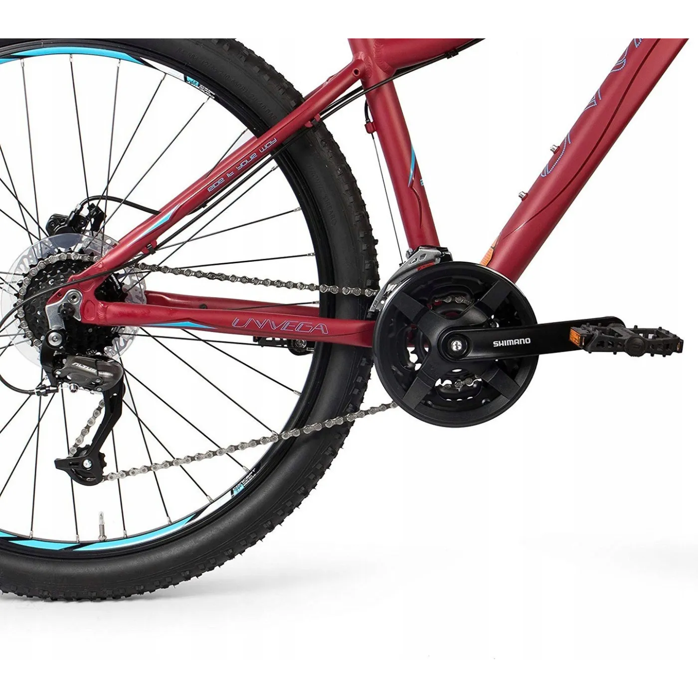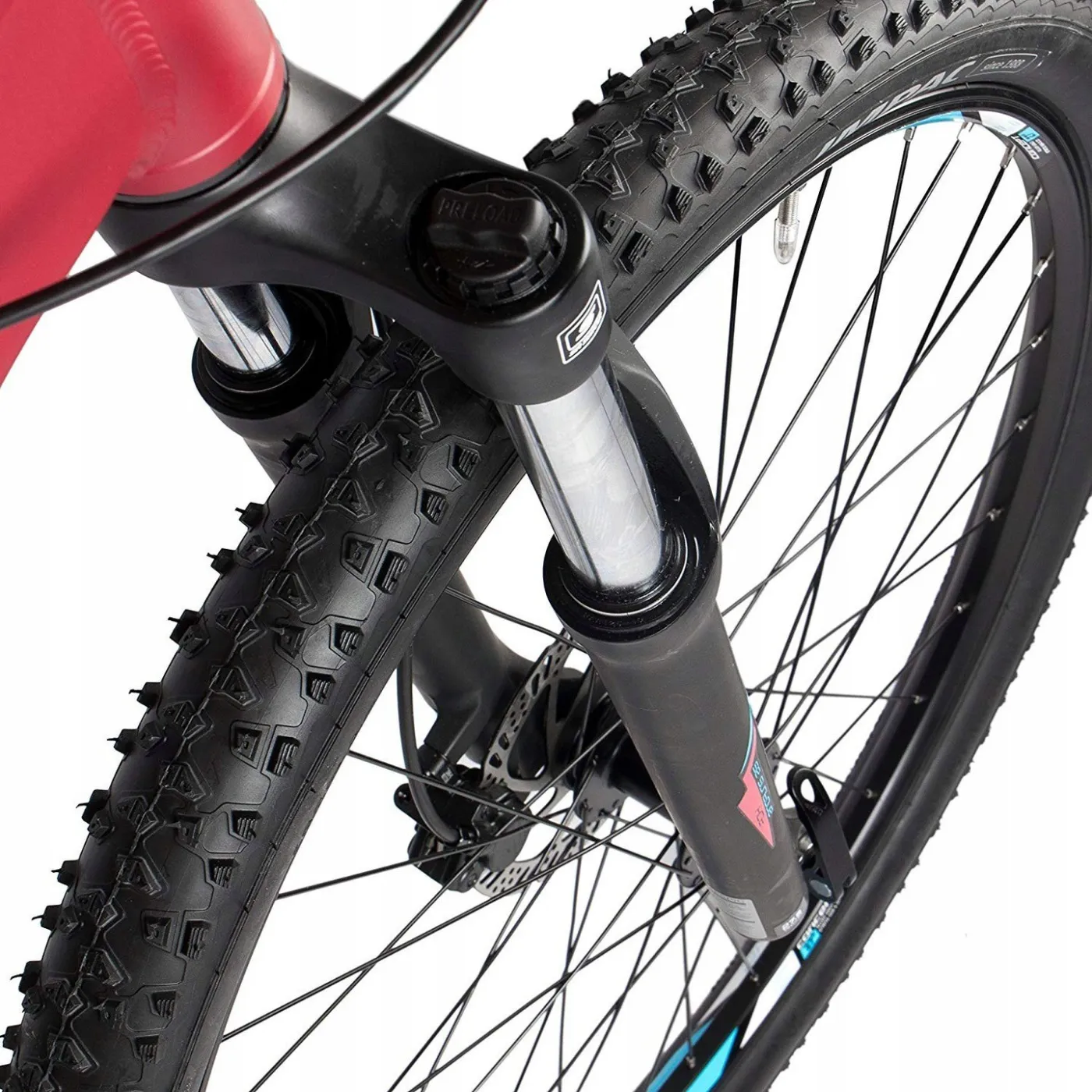 Niezawodny w każdej sytuacji rower górski w kolorze wiśniowym będzie Twoim towarzyszem na lata. Dzięki przedniej amortyzacji nie straszne mu tereny górskie. Z tym modelem bez obaw możesz pokonywać trudności na trasie.
