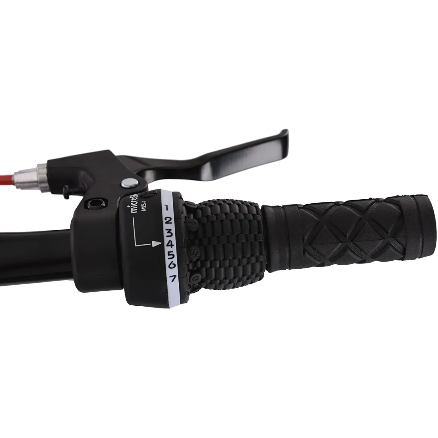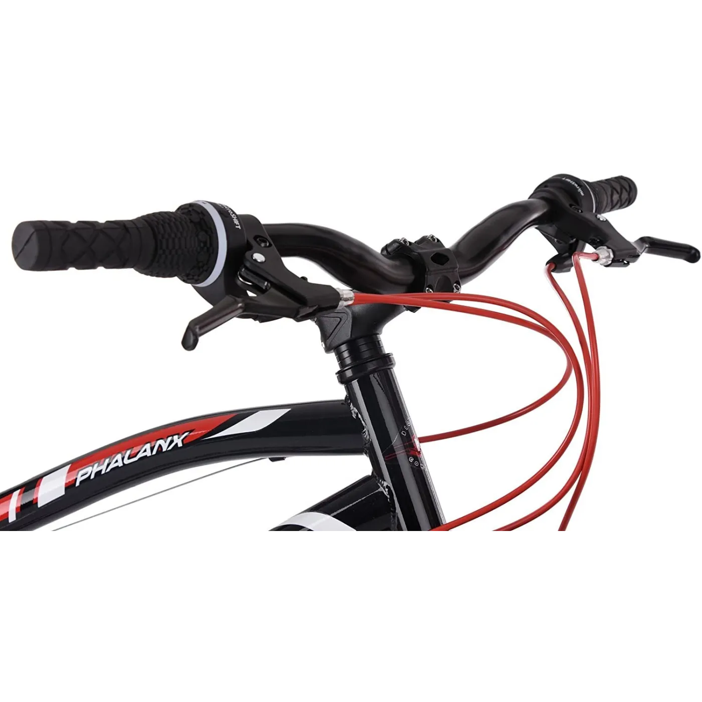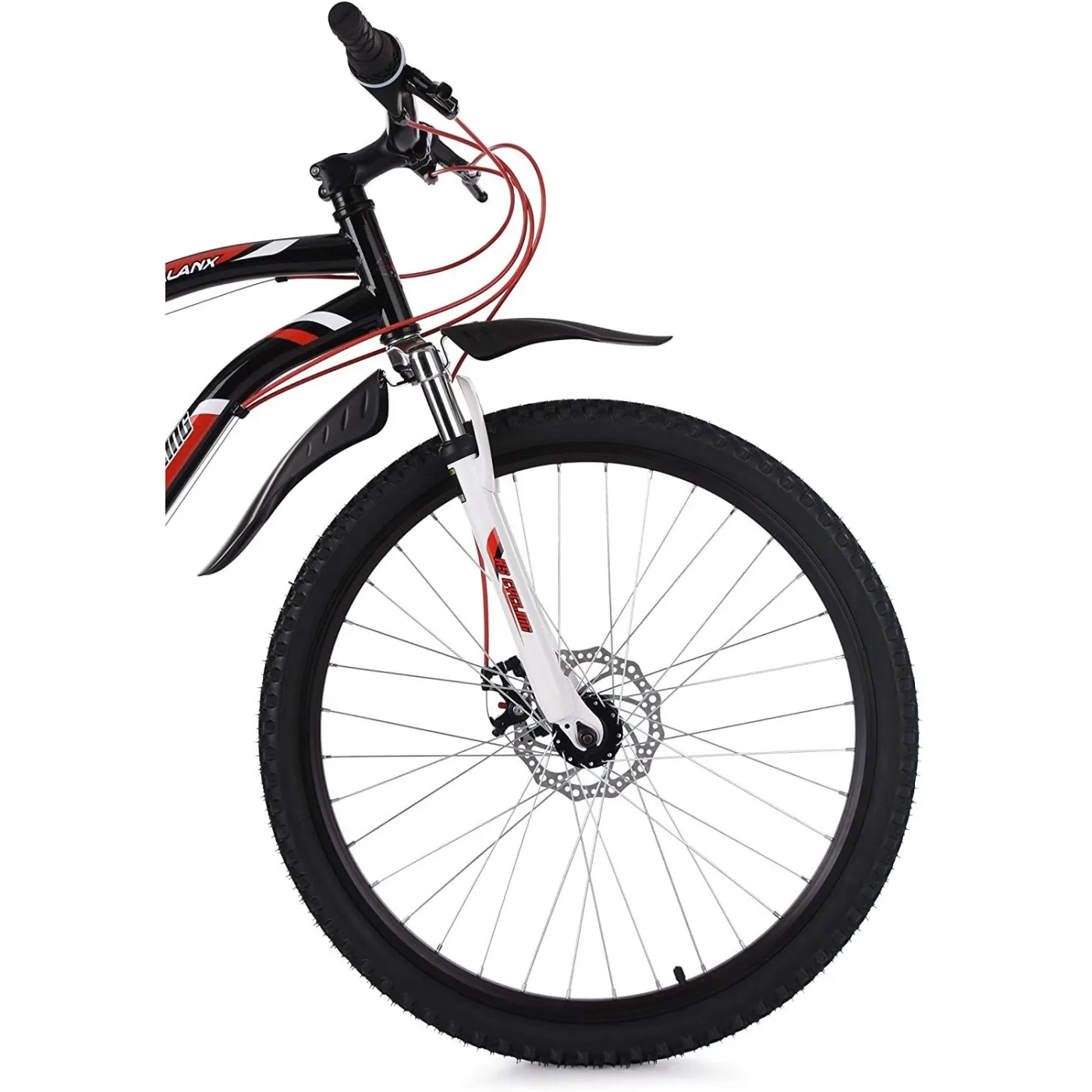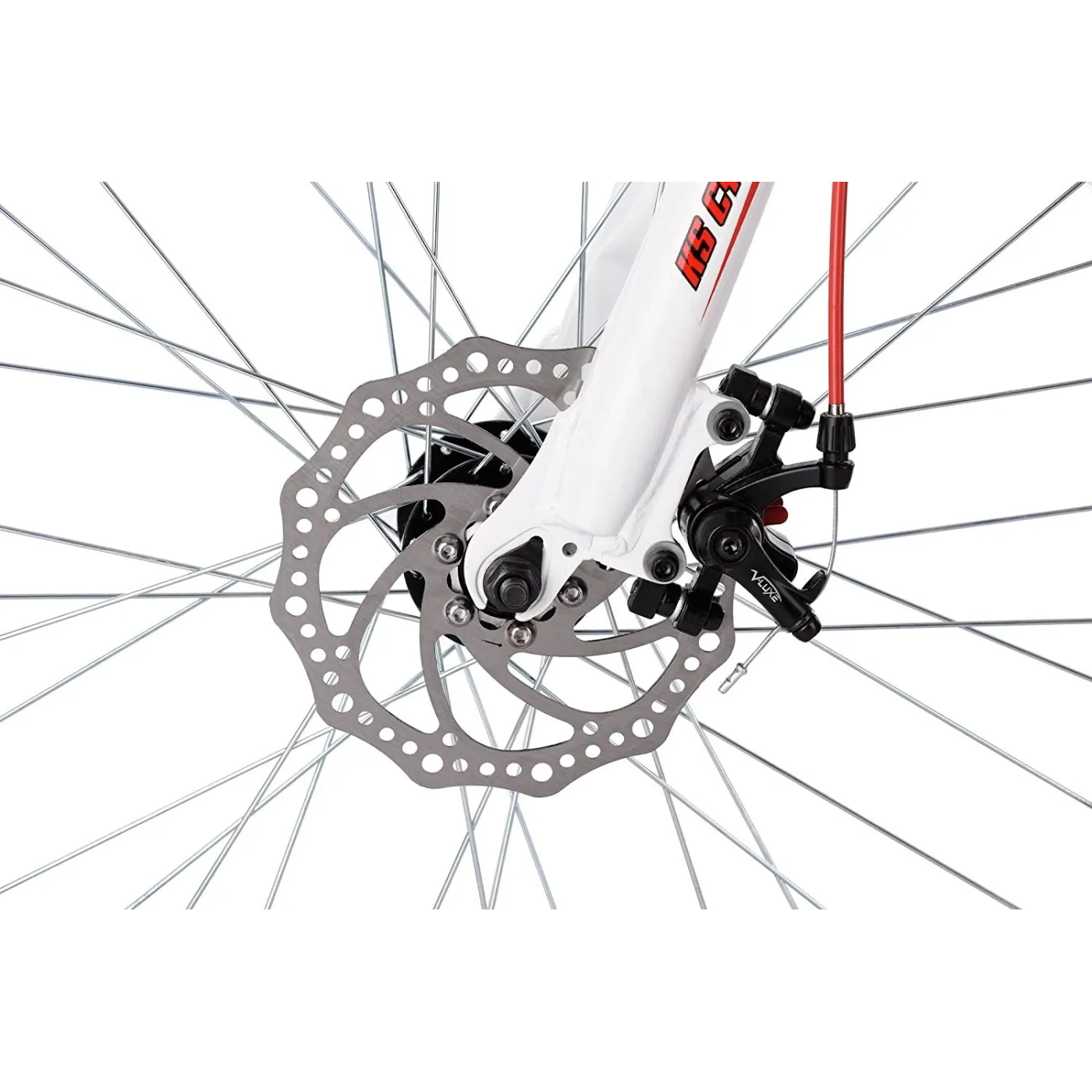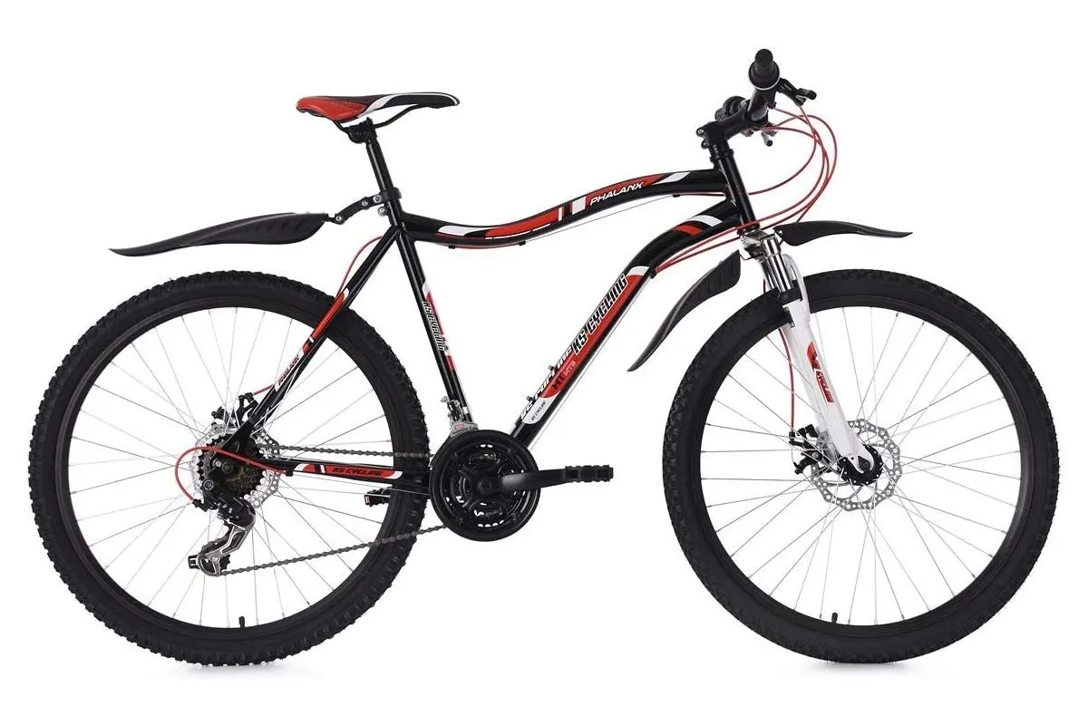 Fantazyjny kształt ramy w czarno czerwonych kolorach nie pozwoli przejść obok niego obojętnie. Rower wyposażony jest w 21 biegów od Shimano oraz hamulce tarczowe, co pozwoli na pokonywanie nawet trudnych terenów bezpiecznie bez ogromnego wysiłku.