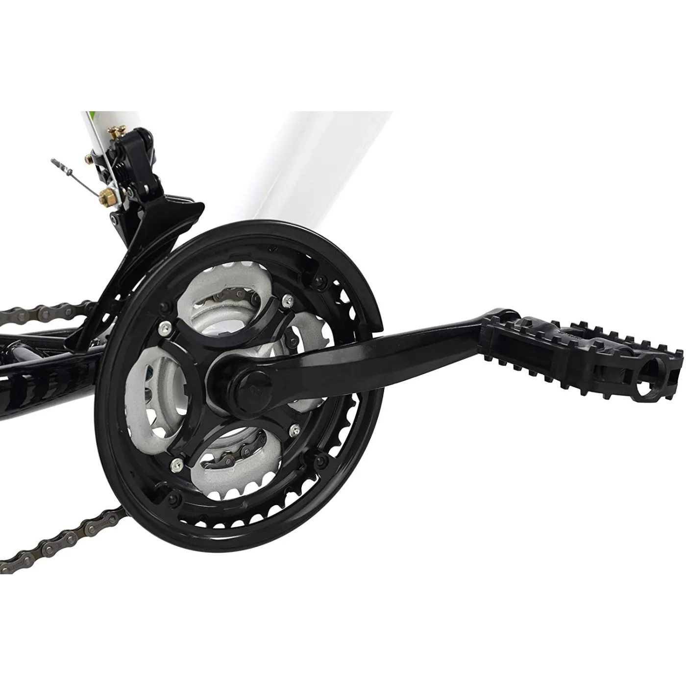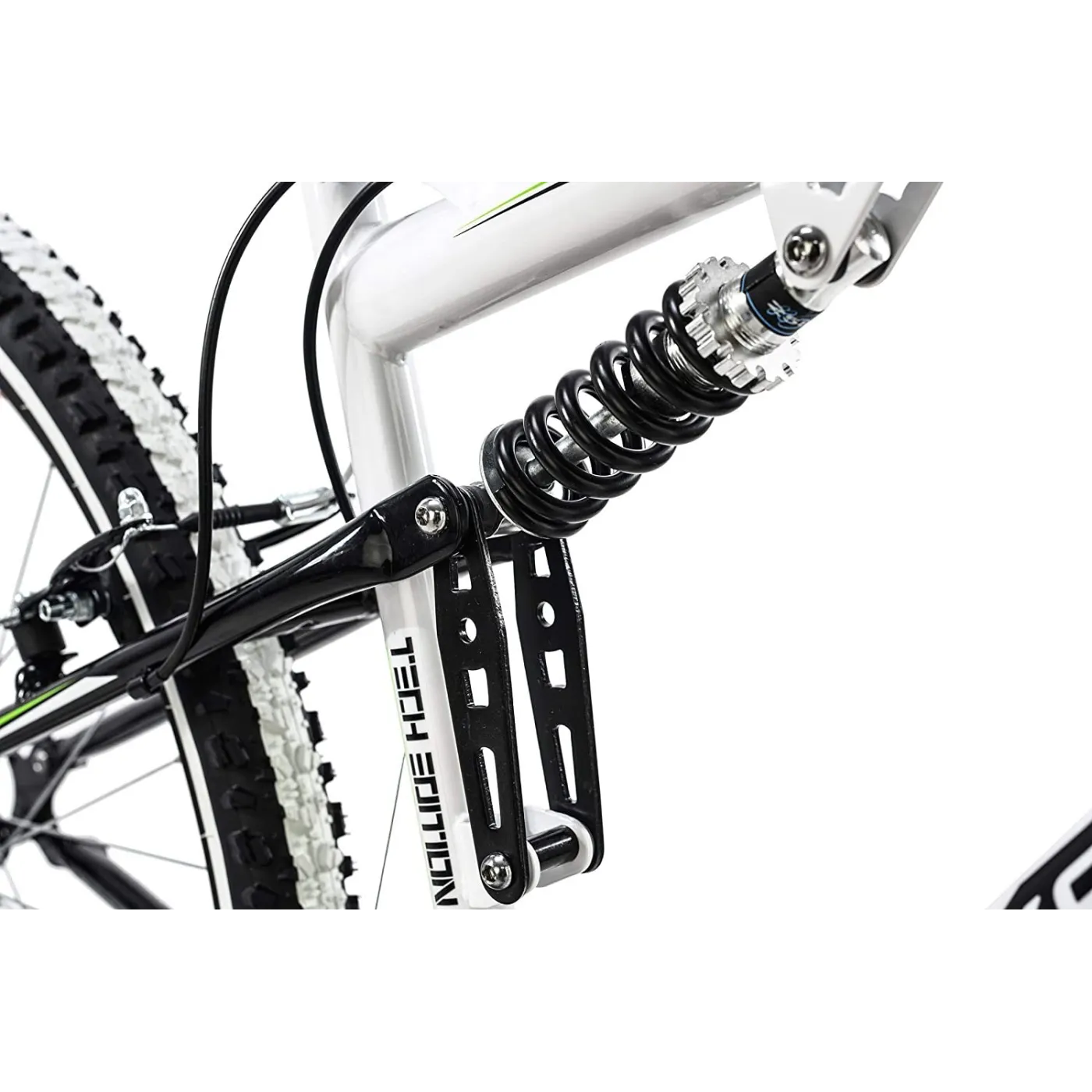 Nadaje się na dłuższe wyprawy, jak i na co dzień. Wyposażony w 21-biegową przerzutkę Shimano obsługiwaną za pomocą obrotowej dźwigni zmiany biegów oraz w klasyczne hamulce V-brake. Do tego rama z pełnym zawieszeniem, która zapewnia pełen komfort jazdy na każdej trasie.