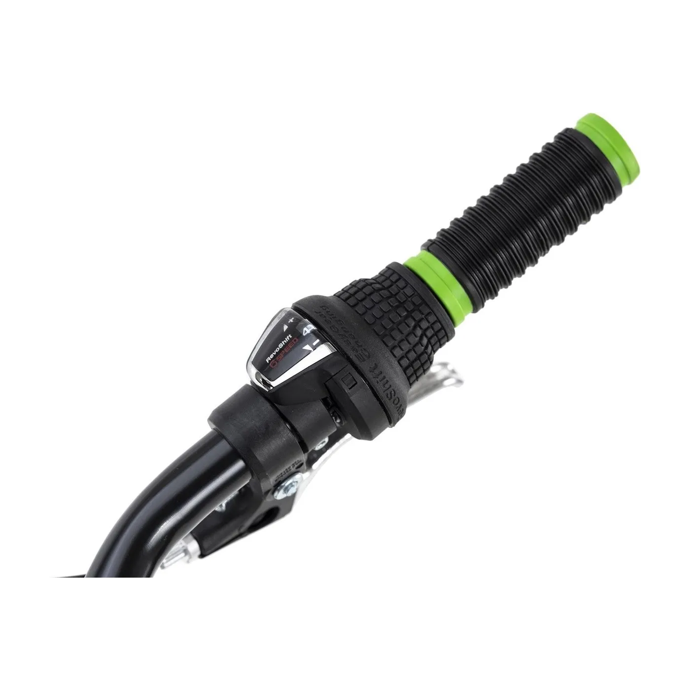 Rower jest wyposażony w 6-biegową skrzynię biegów z komponentami SHIMANO. Do zwalniania wykorzystywane są mechaniczne hamulce tarczowe.