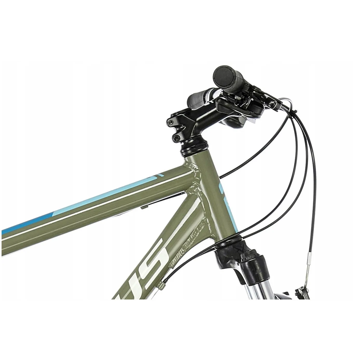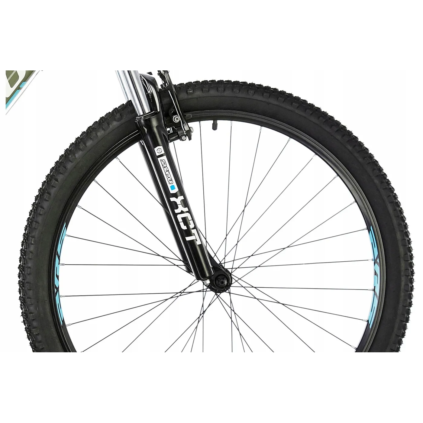 Konstrukcja aluminiowej ramy to pewność sportowego, a zarazem kontrolowanego stylu jazdy. Sprawdzone komponenty od Shimano, takie jak 24-biegowy napęd zapewniają radość z jazdy na lata, a bezpieczeństwo i komfort w cięższym terenie oferują wysokiej klasy hamulce szczękowe typu V-brake oraz amortyzowany widelec Suntour z blokadą skoku. Dopełnieniem całości są stabilne koła, z którymi przemierzysz wiele kilometrów.