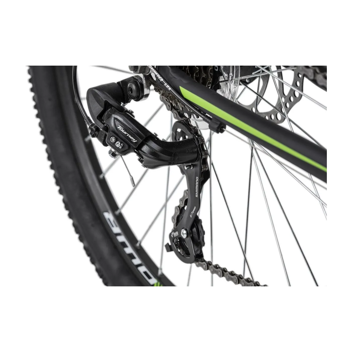 Rower jest wyposażony w 21- szybka przerzutka z komponentami SHIMANO. Niezbędne hamowanie zapewniają mechaniczne hamulce tarczowe z przodu i z tyłu. Ergonomiczne siodełko idealnie wpasowuje się w ogólny obraz.