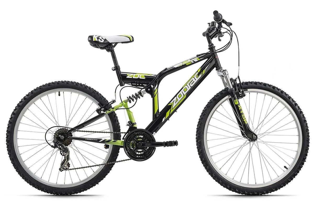 Fajny wygląd w niskiej cenie! Rower górski KS Cycling 26" z pełnym zawieszeniem ZODIAC to idealny rower dla początkujących rowerzystów górskich! Czarna rama, limonkowe akcenty i oczywiście świetny kształt ramy zapewniają atrakcyjny efekt.