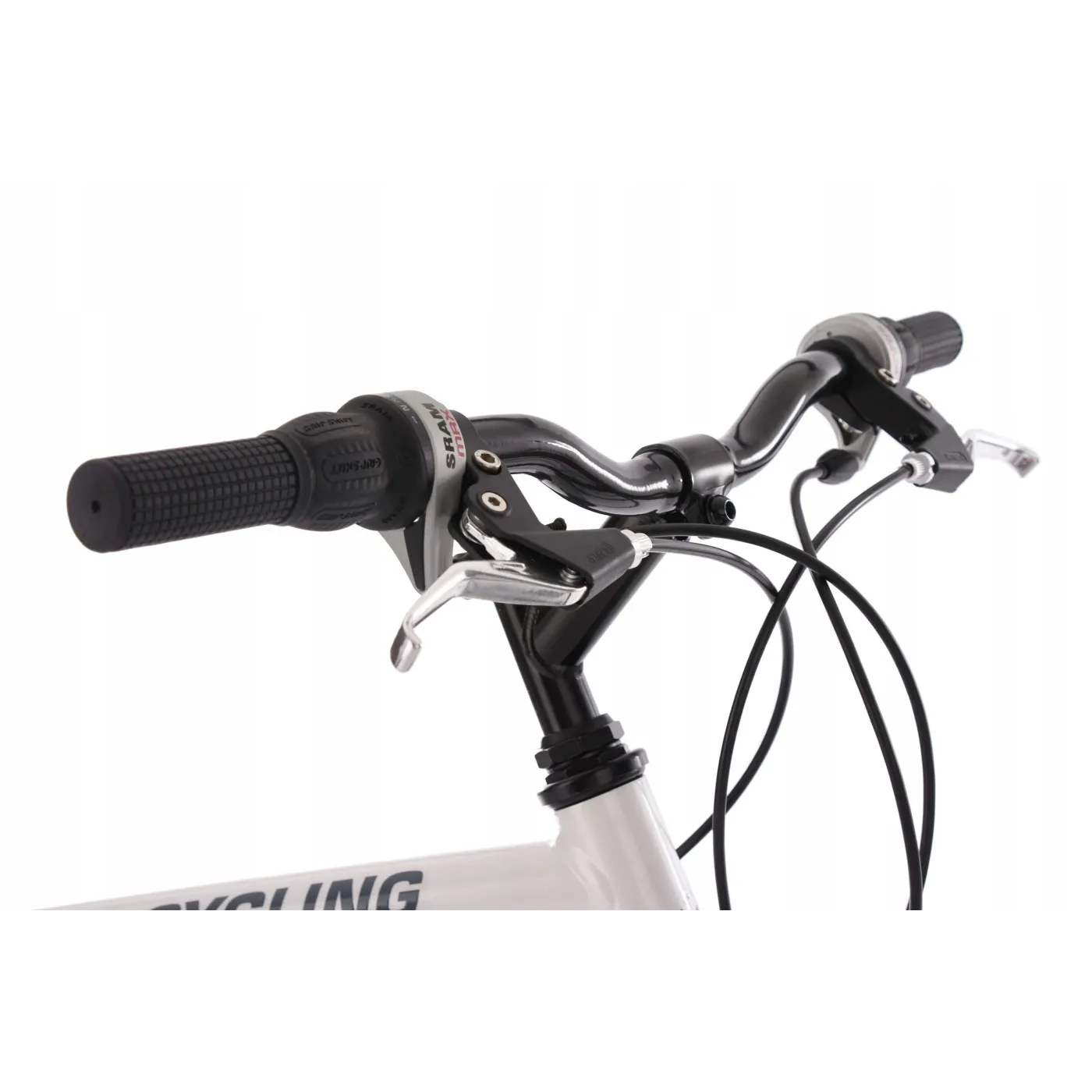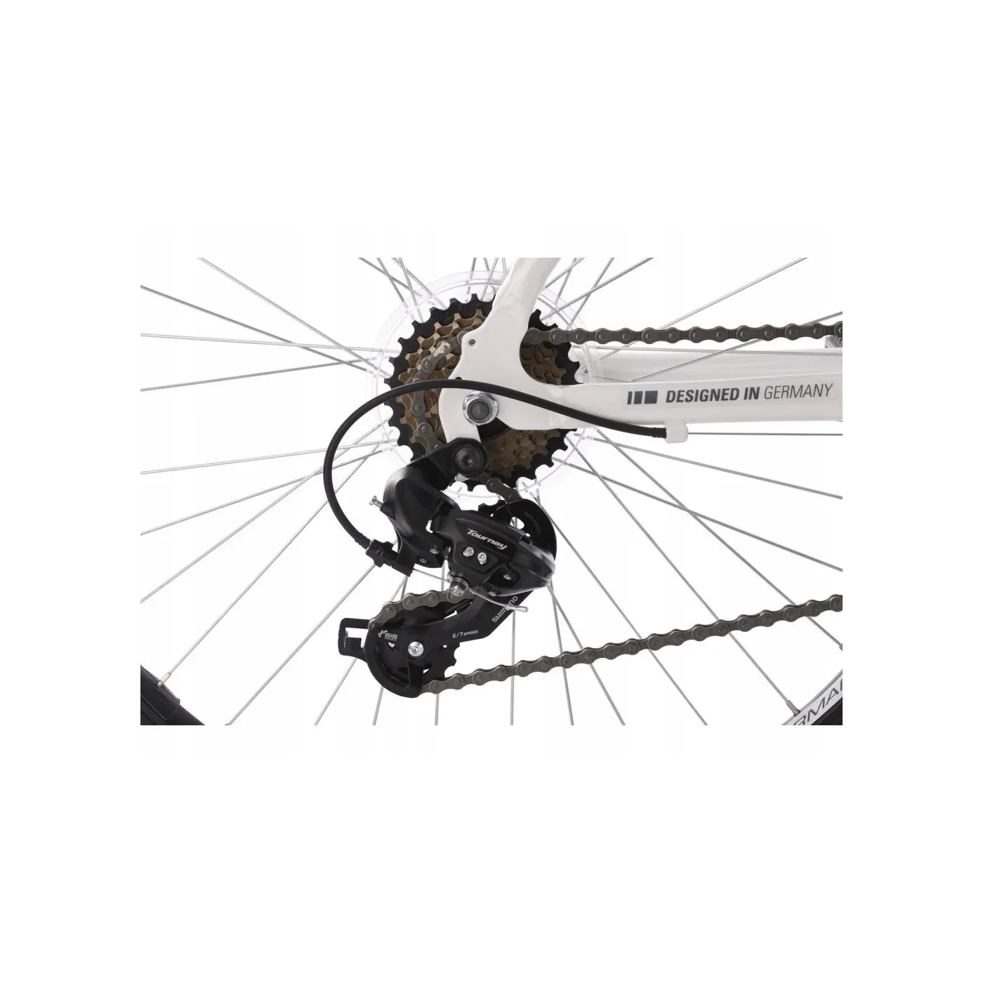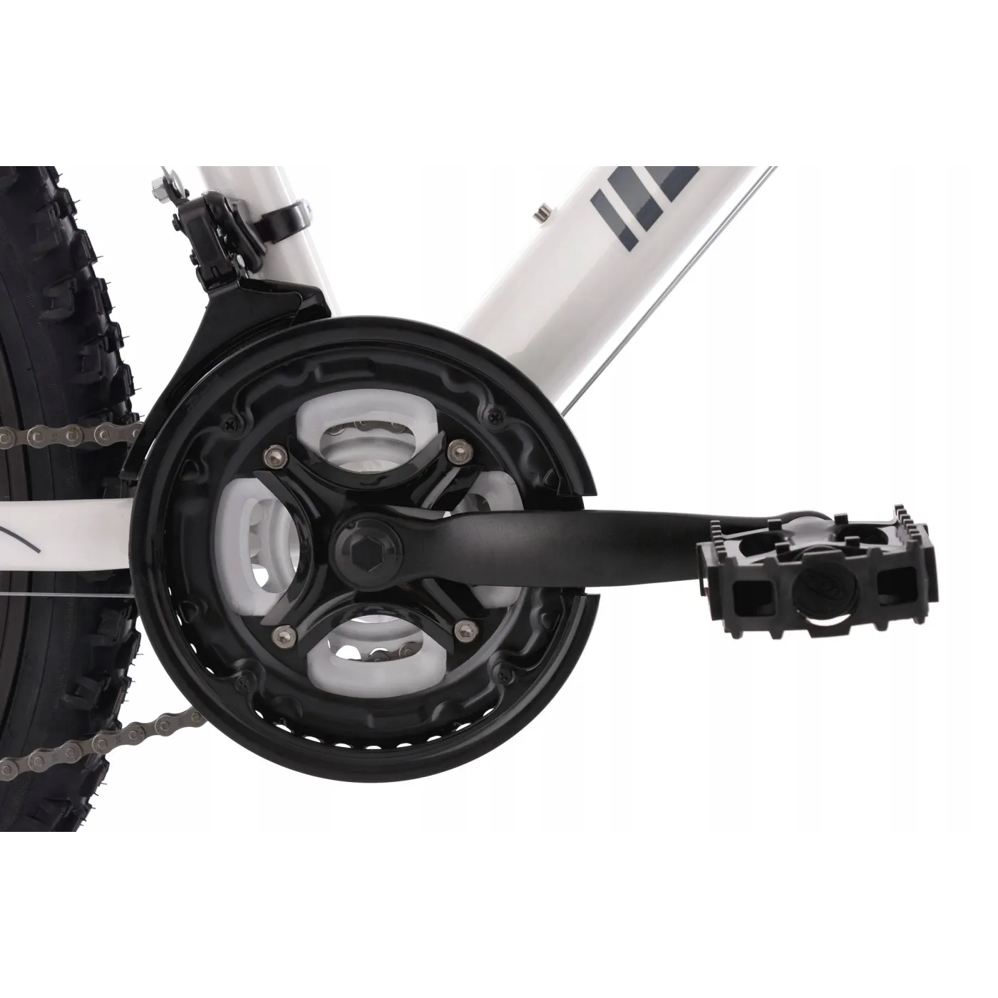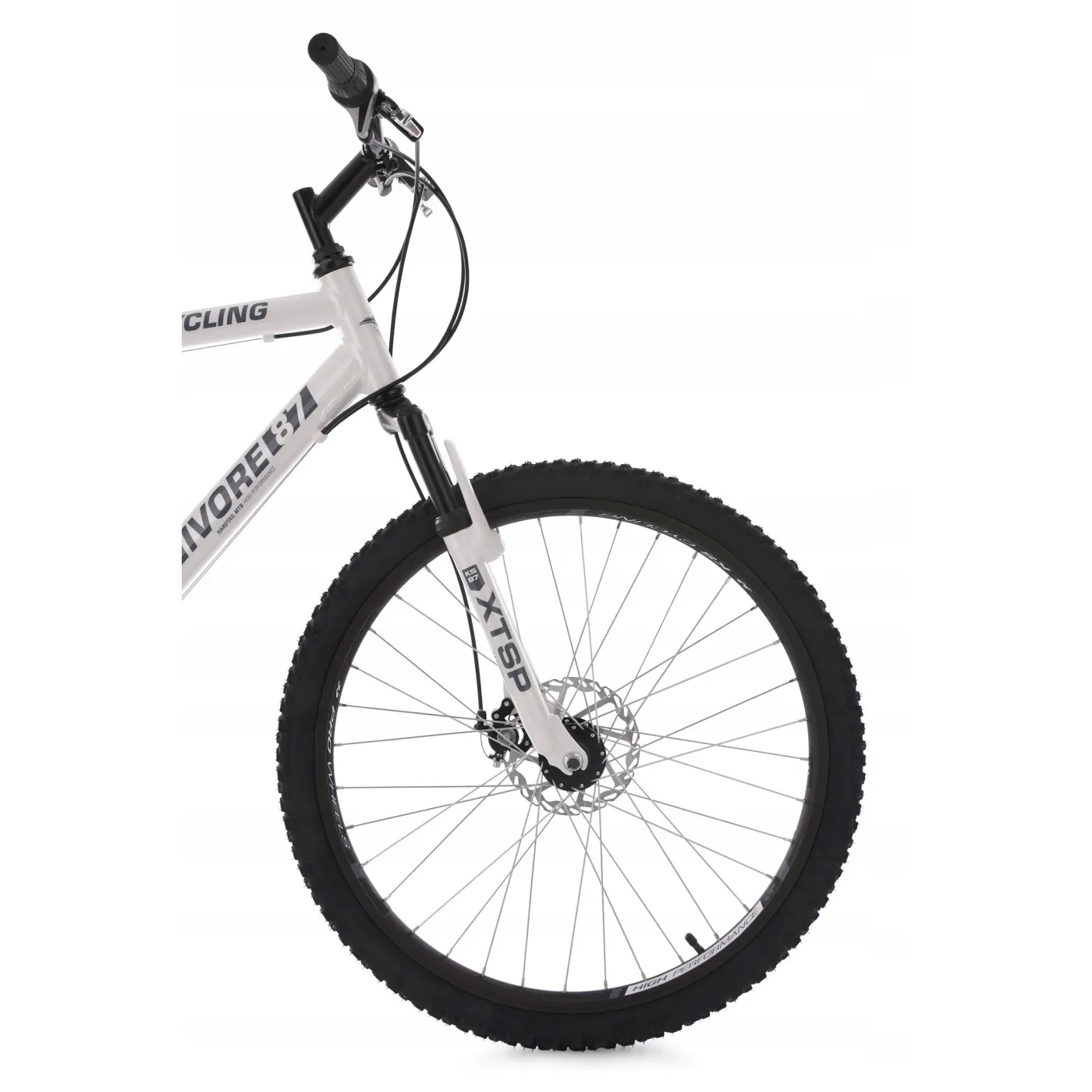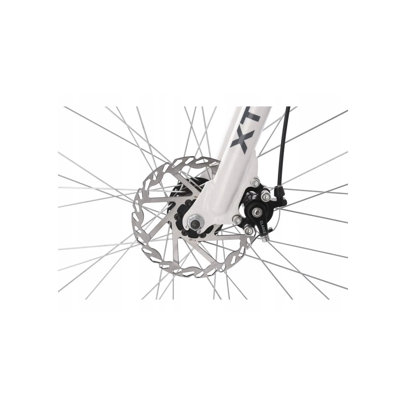 . Wyposażony został w 21 biegów Shimano i 26-calowe koła, które podczas jazdy oferują maksymalną przyczepność i zwinność na szlakach. Pozwoli Ci to na bezproblemowe przemierzanie nawet najtrudniejszych tras. Ponadto w każdych warunkach bezpiecznie zahamujesz dzięki hamulcom: tarczowym i V-brake. Za wygodną podróż odpowiada także komfortowe, ergonomiczne siodełko.