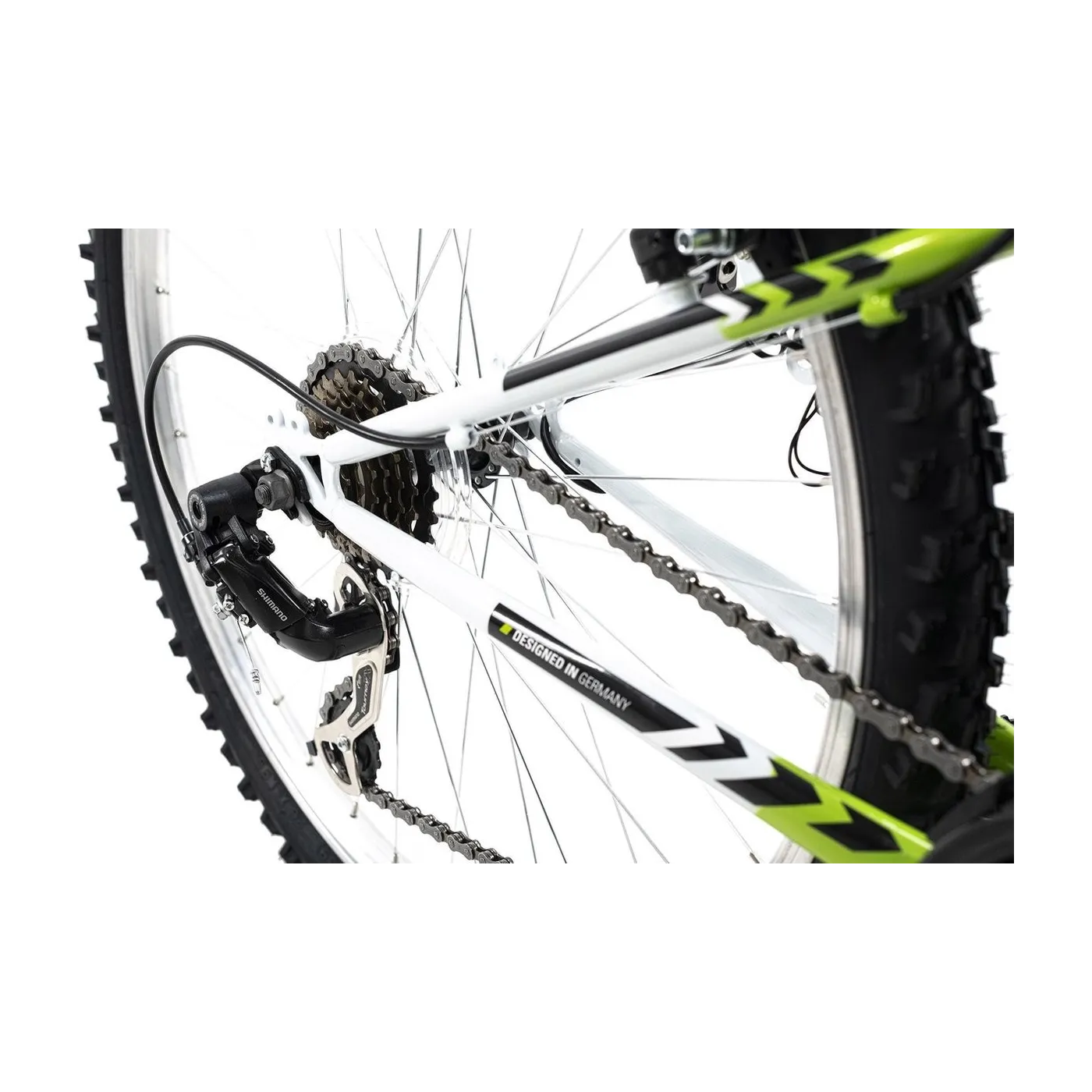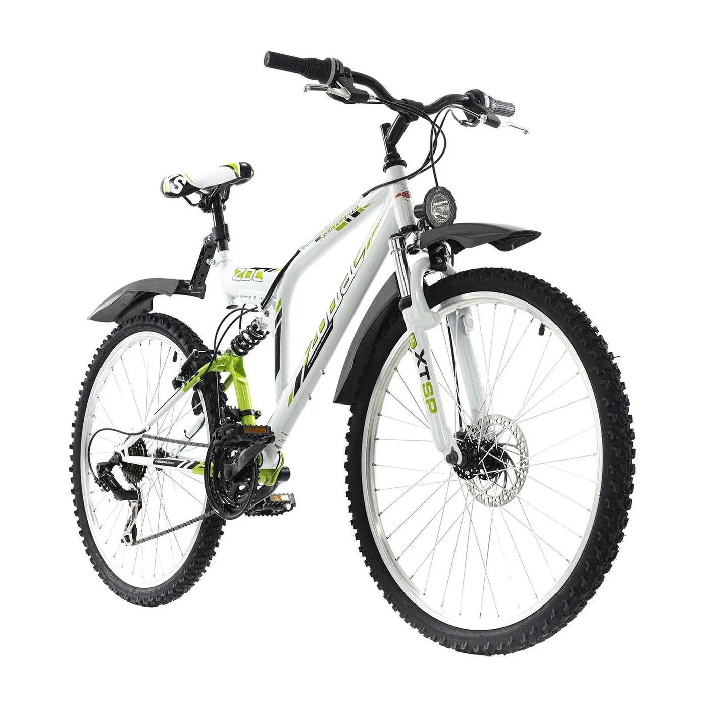 Solidne komponenty, tylne zawieszenie i amortyzowany widelec zapewniają komfort i bezpieczeństwo. Rower górski wyposażony jest w niezawodną 21-biegową przerzutkę z obrotową manetką. To sprawia, że energiczna wycieczka po lesie jest świetną zabawą!