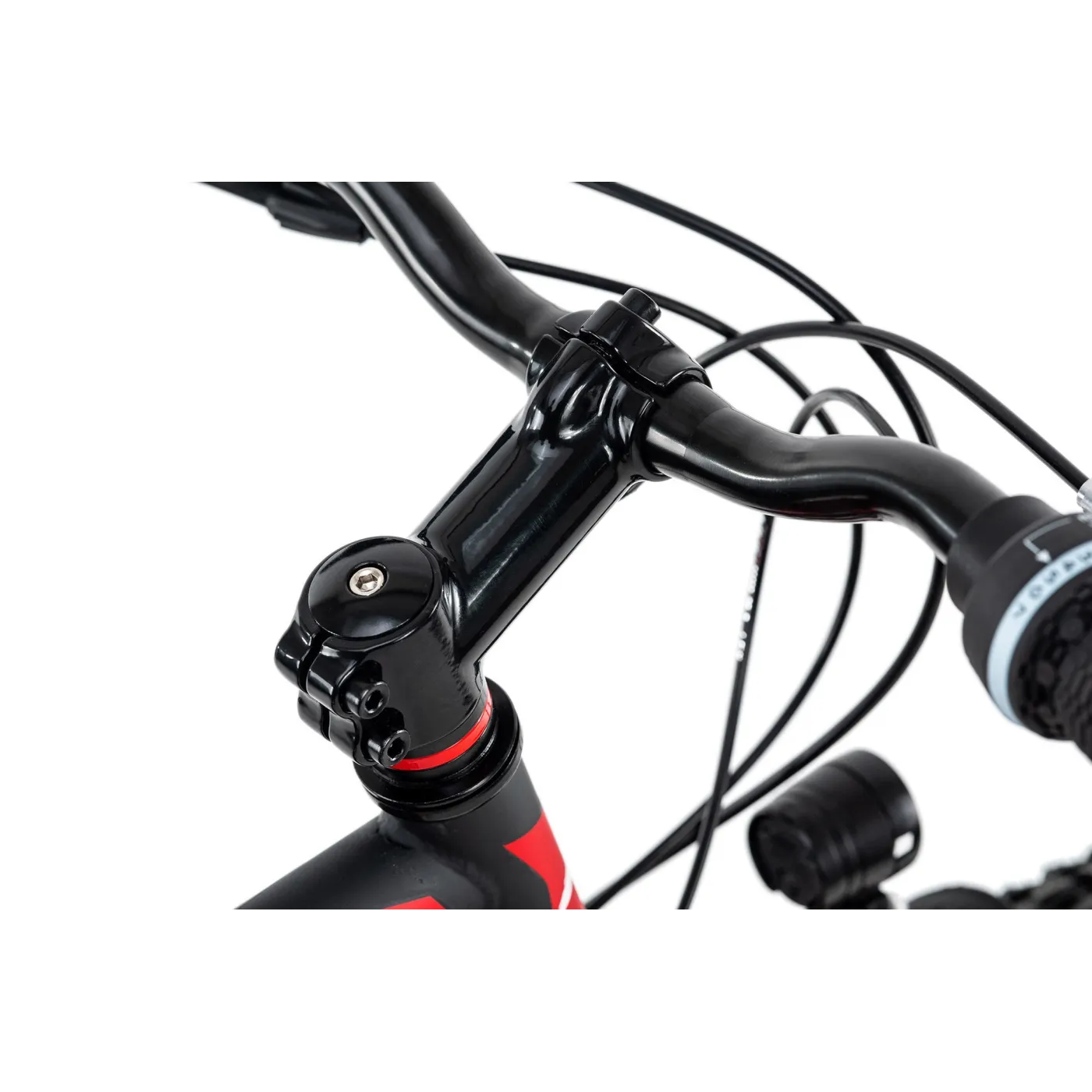 Zawsze gotowy, aby dać z siebie wszystko: czarny matowy rower górski XTINCT firmy KS Cycling zawsze prezentuje się znakomicie z naklejkami w kolorze czerwonym i białym. Wyposażenie eleganckiego roweru jest również przekonujące!