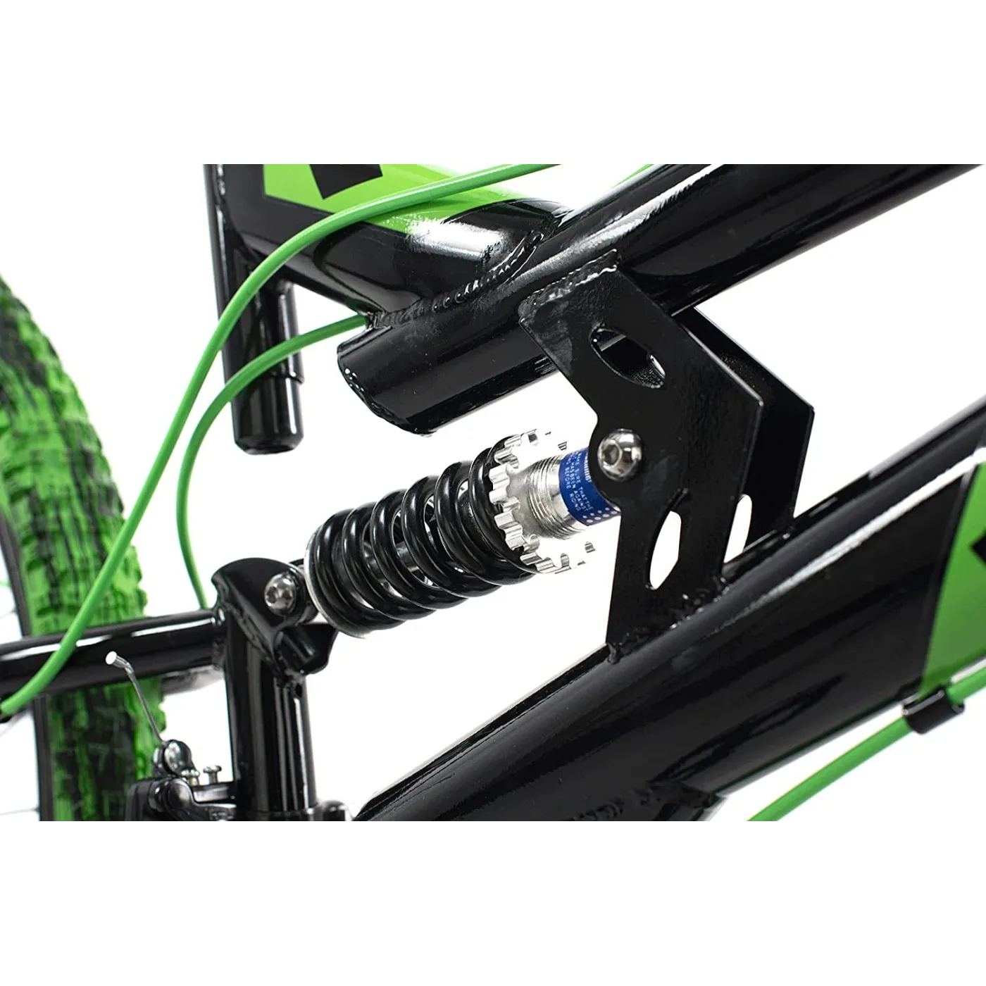 MTB z pełnym zawieszeniem wyposażony jest w 21-biegową przerzutkę, która jest obsługiwana za pomocą obrotowej dźwigni zmiany biegów Shimano RevoShift. Mechaniczne hamulce tarczowe na przednich i tylnych kołach zapewniają dobre hamowanie.