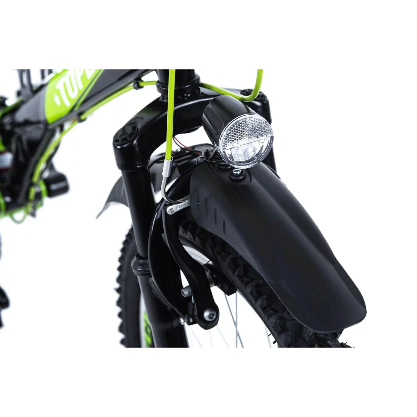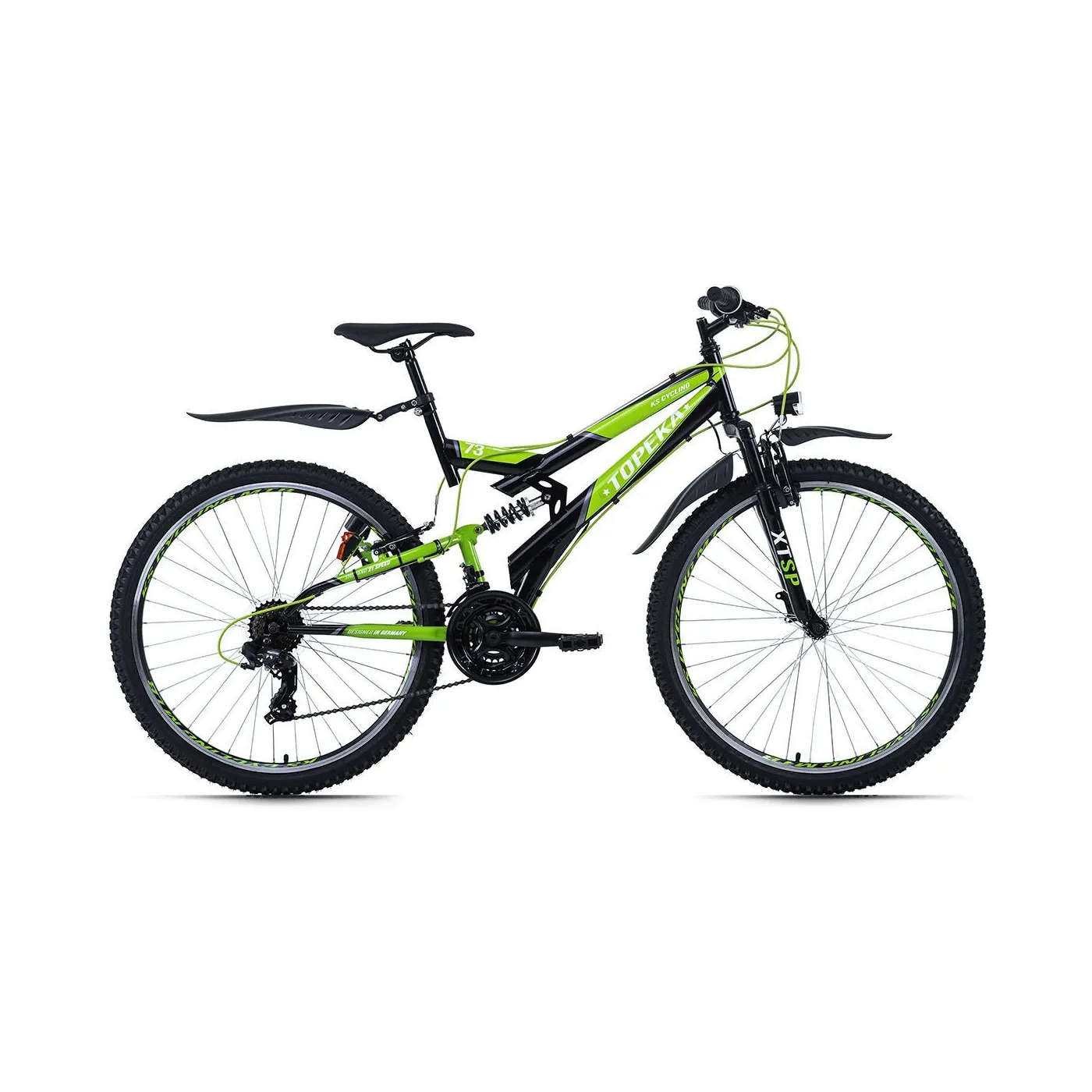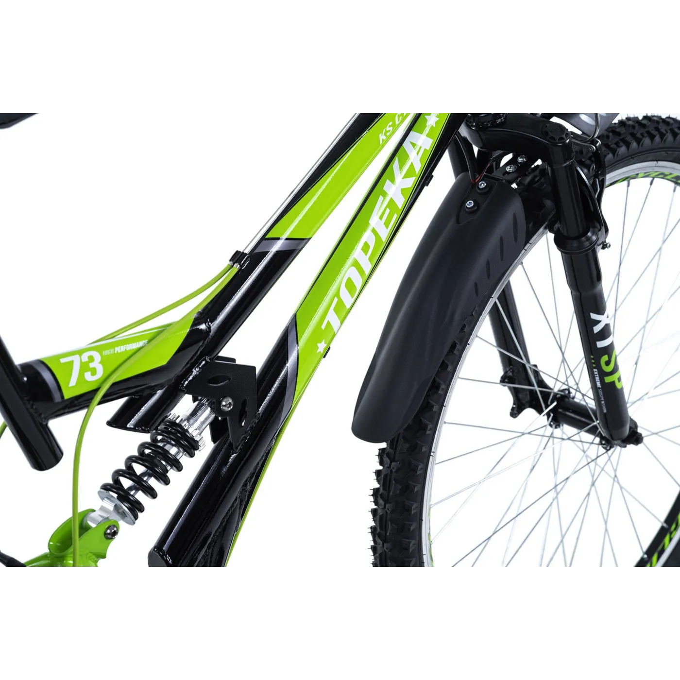 26-calowy w pełni MTB TOPEKA od KS Cycling ma jasnozielone detale na czarnej ramie, dzięki którym rower przyciąga wzrok!
