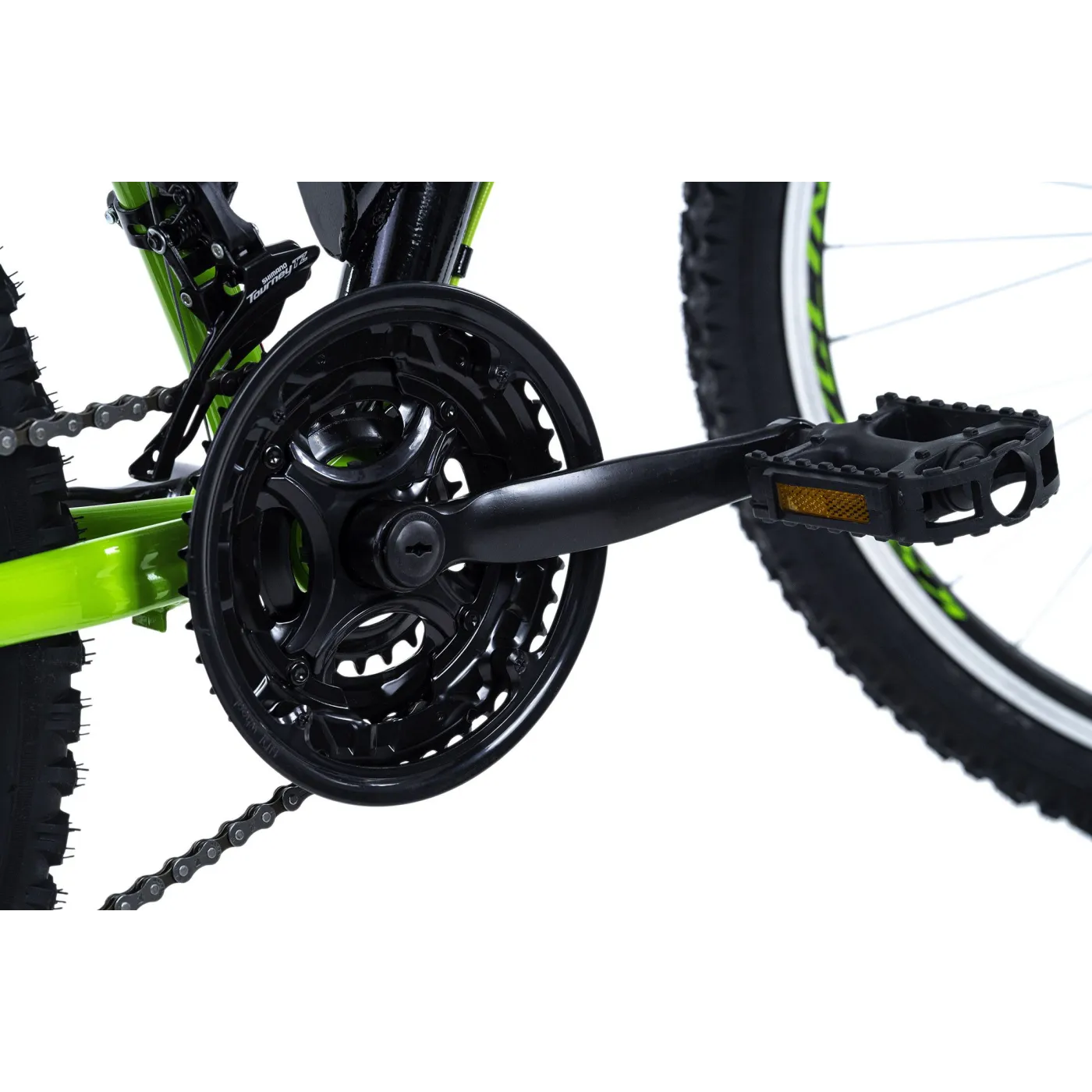 Solidne komponenty, tylne zawieszenie i amortyzowany widelec zapewniają komfort i bezpieczeństwo. Rower górski jest wyposażony w niezawodną 21-biegową przerzutkę z obrotowymi manetkami.