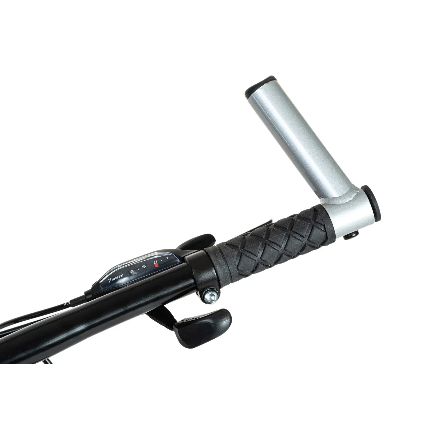 Wyjątkowa geometria amortyzowanej ramy, 26 calowe koła, kierownica dająca możliwość jazdy w dwóch pozycjach, a do tego świetny osprzęt - to idealny opis roweru Crusher. Wyposażony jest w 21 biegów, hamulec przedni tarczowy oraz tylny V-brake, dzięki czemu masz niesamowitą kontrolę w czasie jazdy. Dodatkowo rower posiada przydatne akcesoria, takie jak: błotniki, stopka i oświetlenie zasilane poprzez dynamo. Kolorystyka roweru i jego nietuzinkowe wykończenie dopełnia cały design.