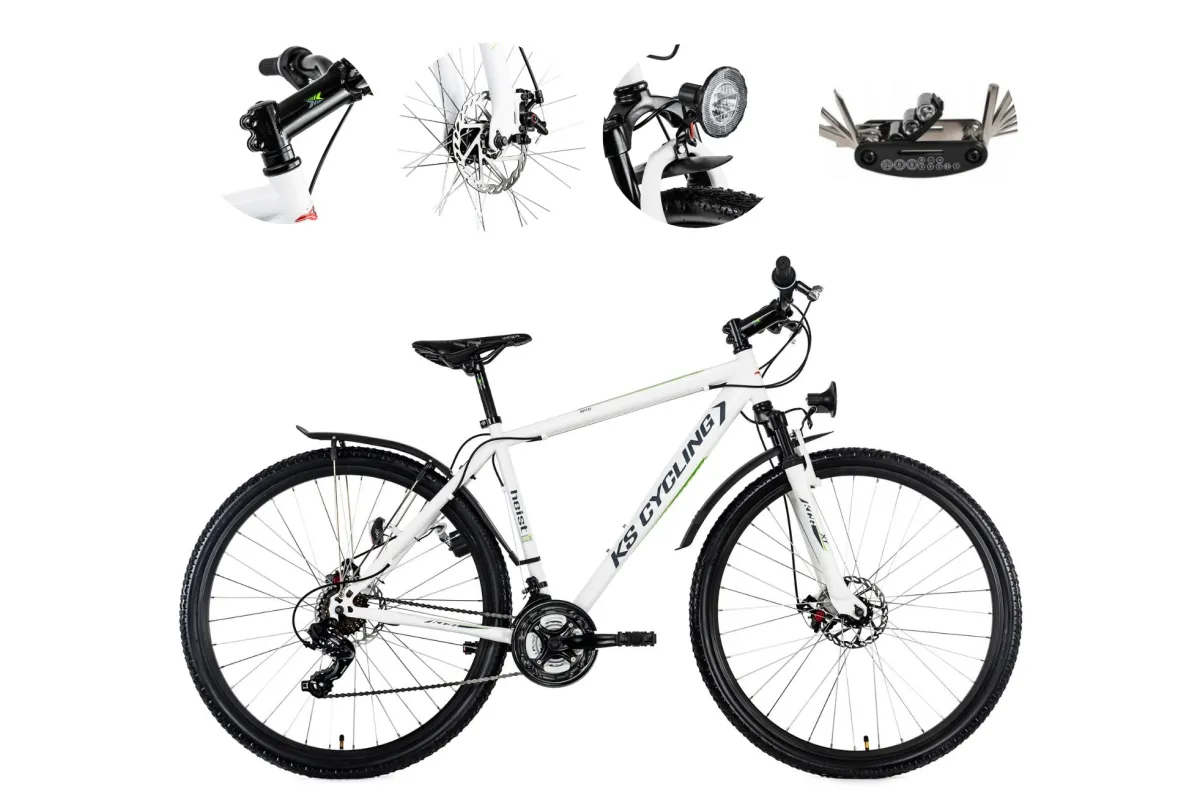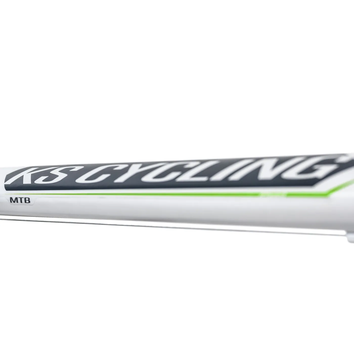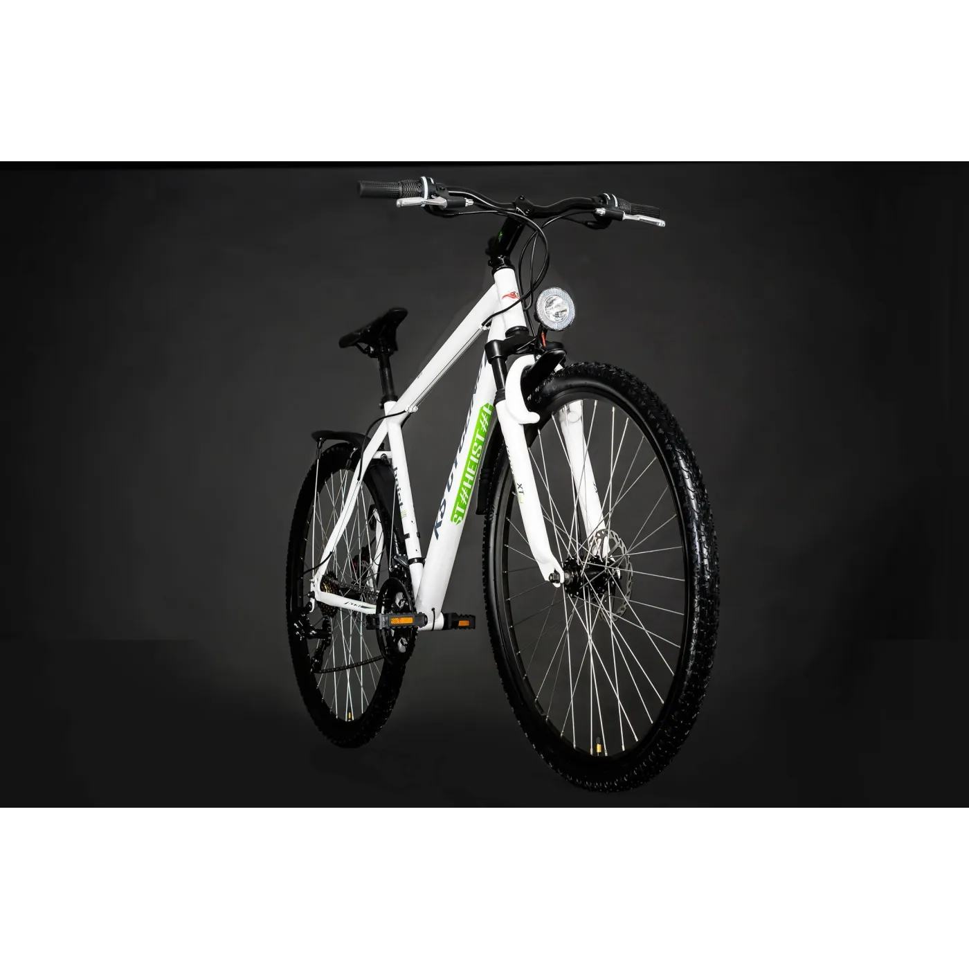 29-calowy rower terenowy zachwyca białą ramą i eleganckimi, czarnymi dodatkami - łączy w sobie nowoczesność oraz klasyczny wygląd.
