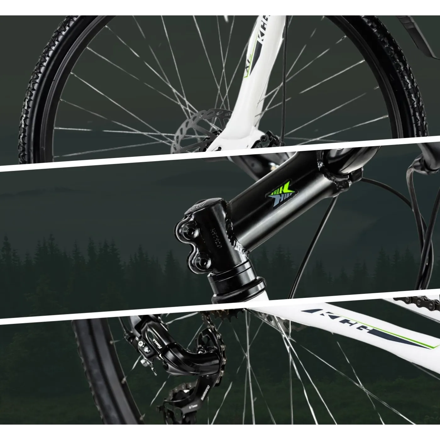 Przekona nawet tych bardzo wymagających rowerzystów. Dzięki 21-biegowej skrzyni biegów SHIMANO, mechanicznym hamulcom tarczowym z tyłu i z przodu, amortyzowanemu widelcowi oraz dużym kołom otrzymujesz solidnie wyposażony rower, który będzie Twoim wiernym towarzyszem podczas wielu tras.