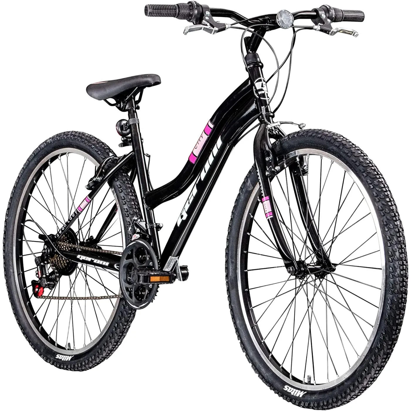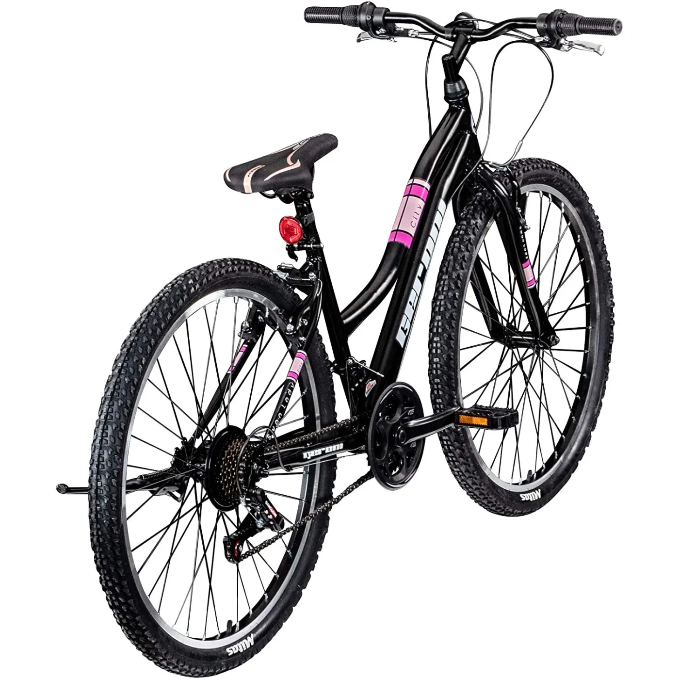 Rower Geroni Swan Lady to piękny 26-calowy rower górski dla kobiet lub dziewczynek o wzroście od 155 do 170 cm. Damska rama MTB z niskim wejściem zwiększa równowagę na rowerze, dzięki czemu rower zapewnia bezpieczną jazdę.