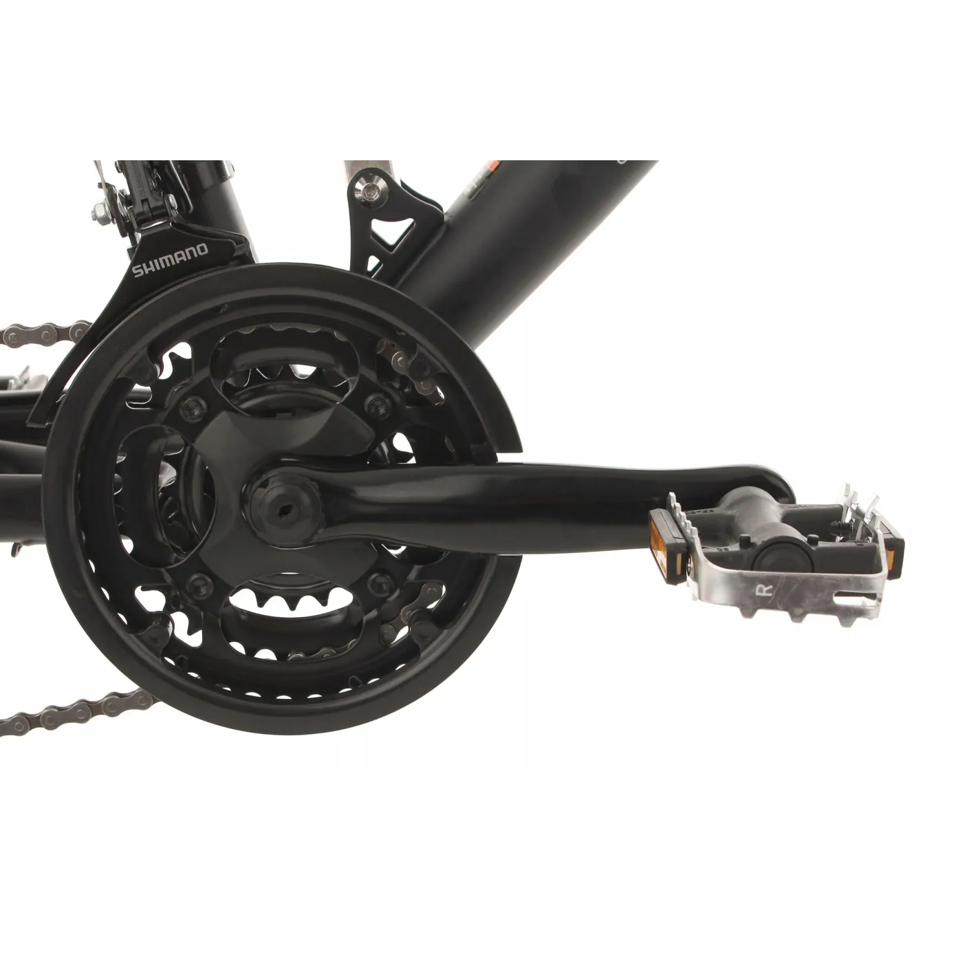 Świetnie sprawdzi się podczas jazdy po przeróżnych terenach. Rower posiada wytrzymałą, stalową ramę oraz amortyzację, dzięki której jazda jest bardziej komfortowa. Wyposażony został również w wysokiej klasy hamulce tarczowe J.A.K, dla których nawet błyskawiczne, awaryjne hamowanie nie stanowi problemu.