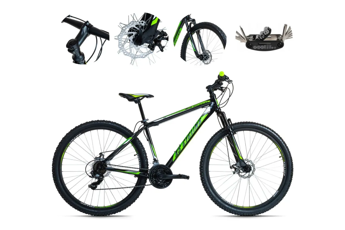👉 Koła o rozmiarze 29" x 2.10" gwarantują stabilność i komfort podczas jazdy, a wygląd w kolorze czarnym z białymi i zielonymi wstawkami z pewnością przyciąga spojrzenia. Dodatkowo rower wyposażony jest w dzwonek, który zwiększa bezpieczeństwo podczas jazdy w ruchu miejskim