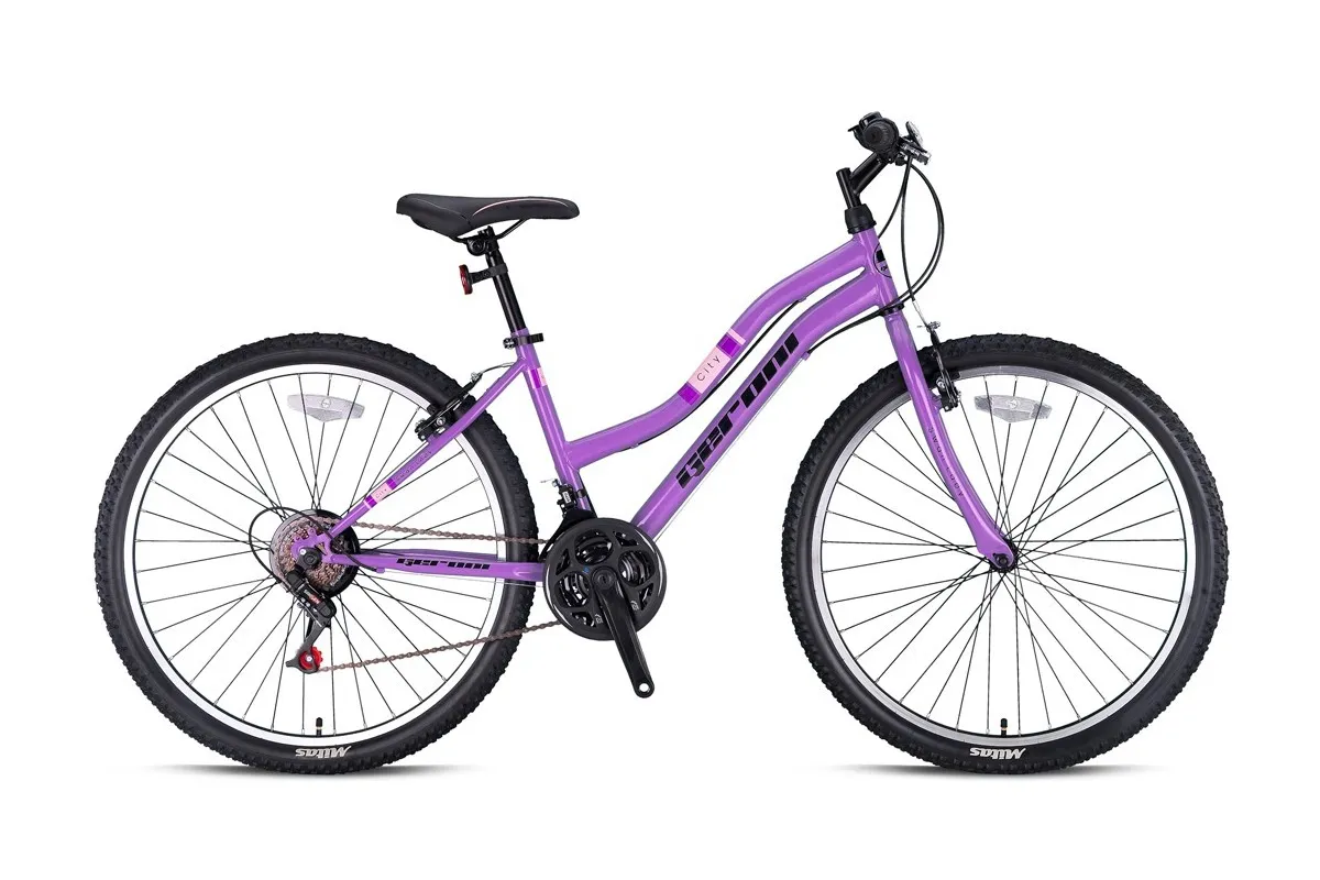 Rower Geroni Swan Lady to piękny 26-calowy rower górski dla kobiet lub dziewczynek o wzroście od 155 do 170 cm. Damska rama MTB z niskim wejściem zwiększa równowagę na rowerze, dzięki czemu rower zapewnia bezpieczną jazdę.