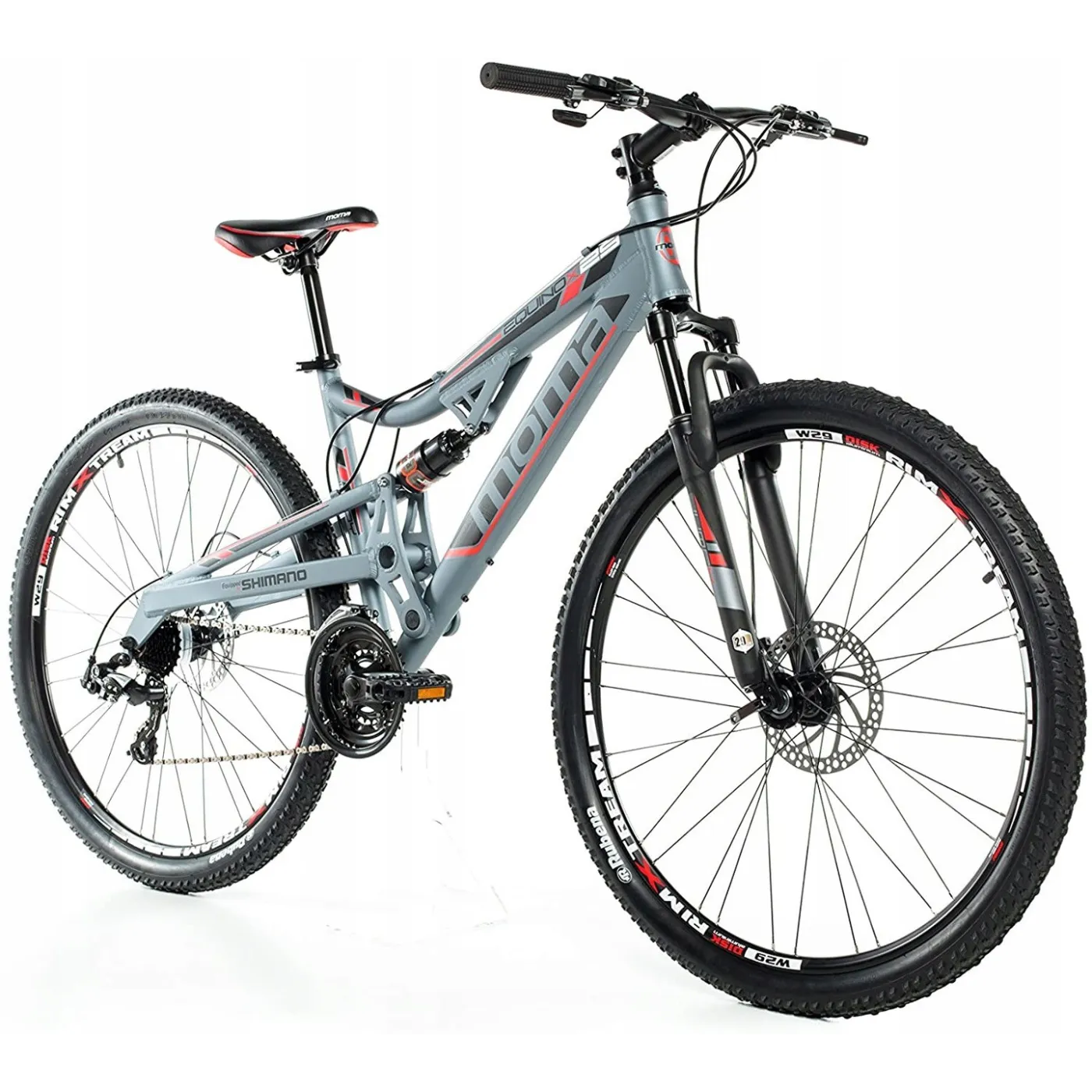 Rower górski terenowy z aluminiową ramą, dzięki któremu możemy jeździć po mieście, polnych drogach a nawet zapuszczać się w górskie szlaki. Dziury i inne przeszkody, można łatwo pokonać dzięki podwójnemu zawieszeniu. Wbudowane hamulce tarczowe doskonale radzą sobie przy złej pogodzie, zwłaszcza w wodzie. Wszystkie jego komponenty są wysokiej jakości, takie jak Shimano 24V, co pozwala nam dostosować nasz wysiłek do niezbędnego rytmu pedałowania. Koła 29 "sprawiają, że jest to bardzo wszechstronny rower: dobra przyczepność, niezwykłe przyspieszenie i sterowność oraz niezawodny na długie podjazdy i płaski teren.