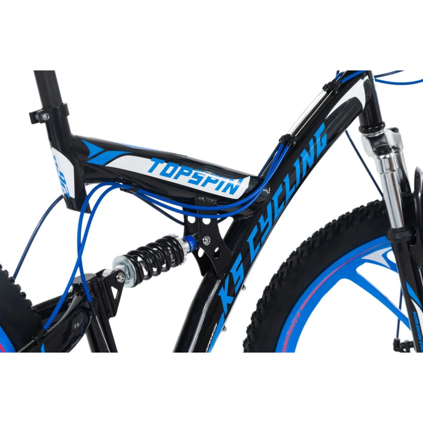 Zanurz się w przygodę kolarstwa górskiego: z TOPSPIN od KS Cycling! Ten 26-calowy rower górski z pełnym zawieszeniem jest dostępny w kolorze czarnym z kolorowymi naklejkami i linkami. Siodełko jest również w pełni skoordynowane z projektem. Ten niesamowity wygląd jest wszędzie w centrum uwagi!