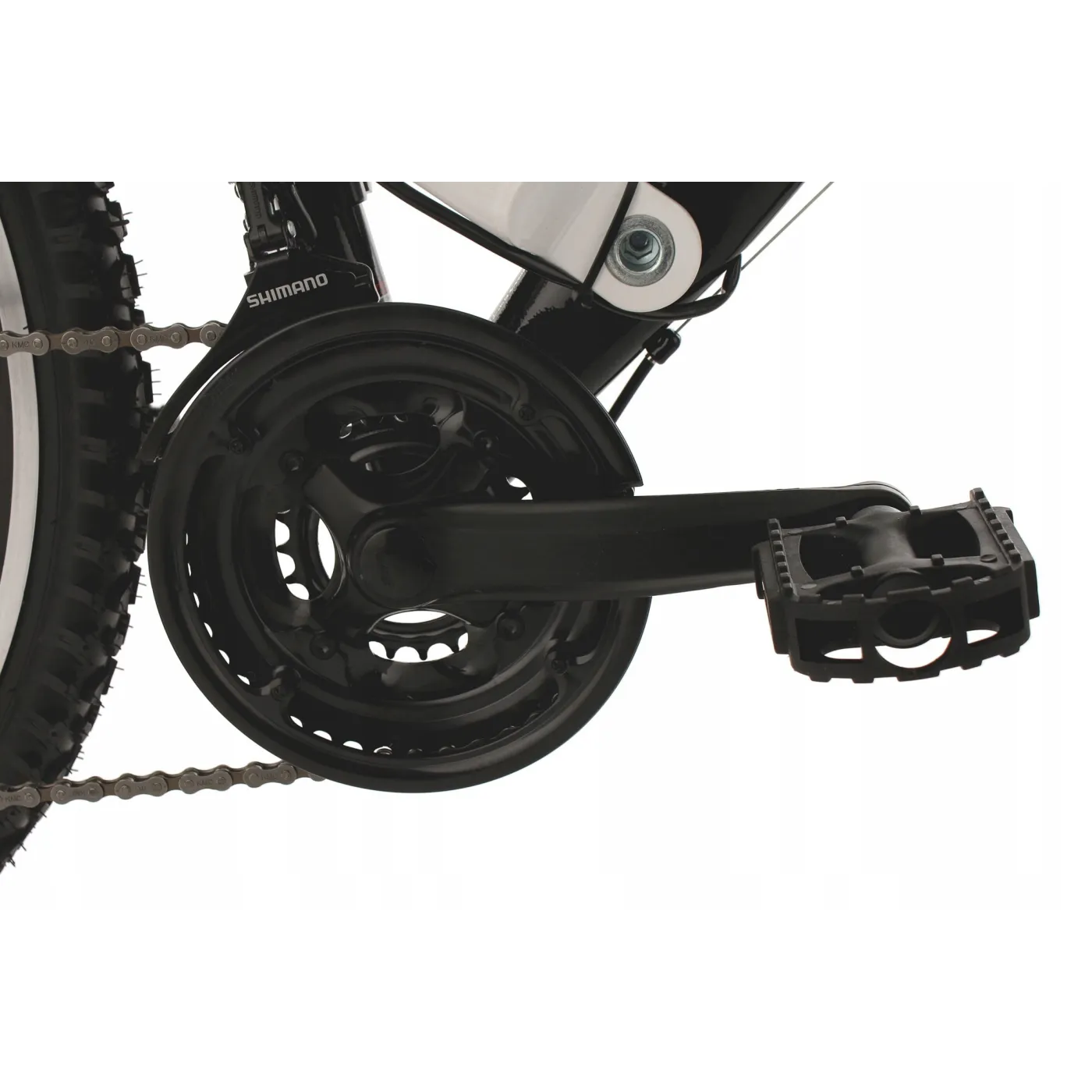 Rower górski ATB 4MATERS pomimo swojej klasycznej, czarno-białej stylistyki nie wygląda wcale nudno. Posiada pełne zawieszenie oraz amortyzację zarówno z przodu jak i z tyłu, co sprawia, że rower jest imponująco wygodnym pojazdem. Ponadto wyposażony jest w system oświetlenia, dzięki czemu jazda w ciemności jest równie bezpieczna. Komfort na wszystkich trasach zapewnia 21-biegowa przerzutka Shimano obsługiwana przy pomocy obrotowych manetek Revoshift, natomiast bezpieczeństwo zwalniania oraz zatrzymywania się dają hamulce tarczowe z przodu oraz V-Brake z tyłu.