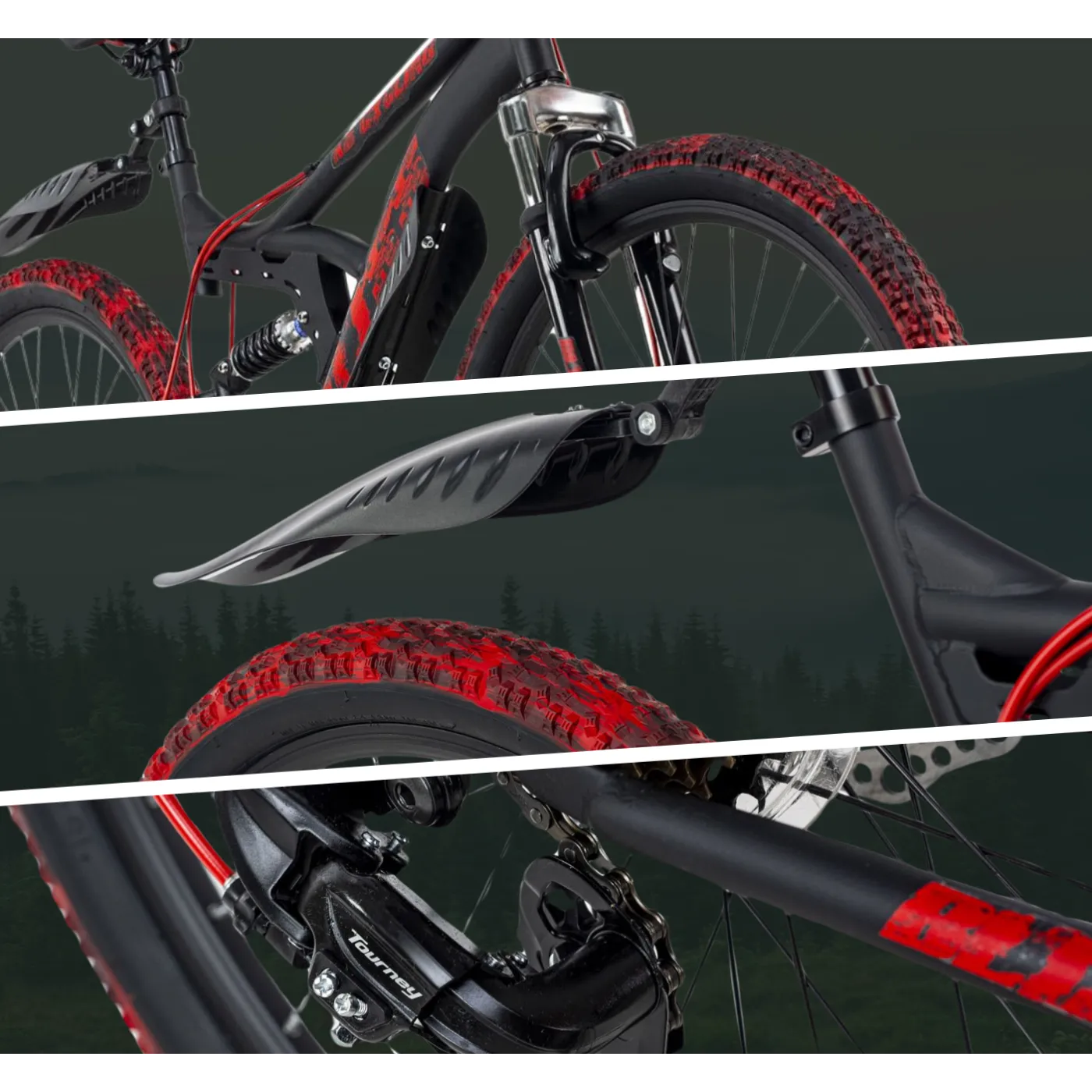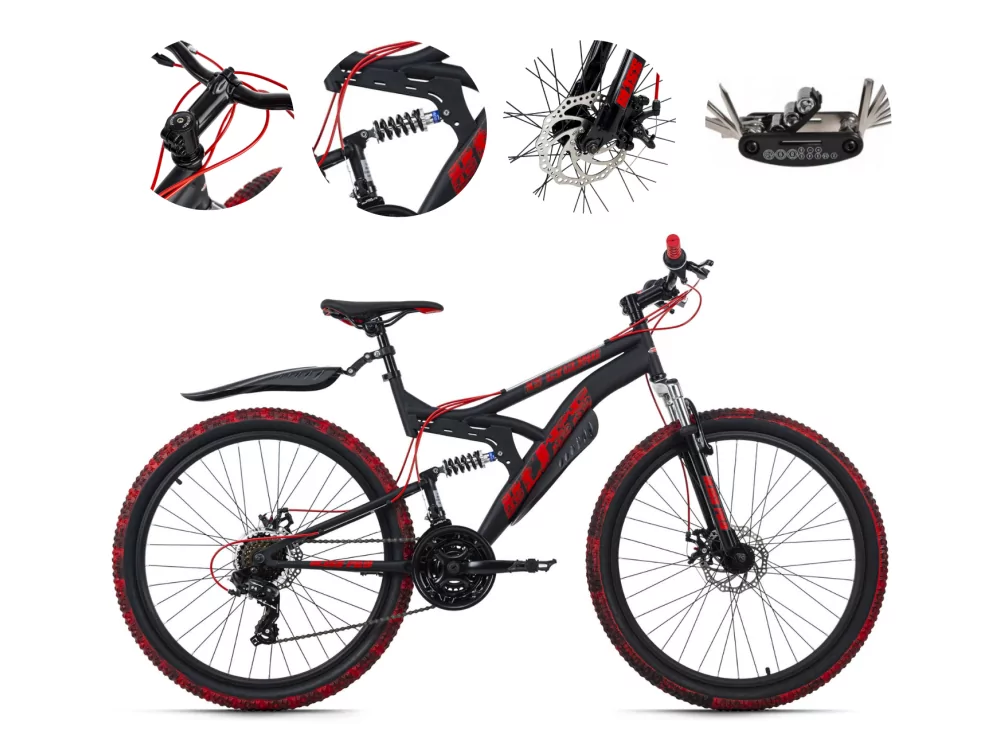 ✔️ Opony o rozmiarze 26" x 2,10" zapewniają świetną przyczepność i kontrolę nad rowerem w każdej sytuacji. Dodatkowo, rower jest wyposażony w błotniki, które chronią przed zabrudzeniem i błotem podczas jazdy w deszczowe dni. Dzwonek pozwala ostrzec innych użytkowników drogi o swojej obecności, co zwiększa bezpieczeństwo podczas jazdy.