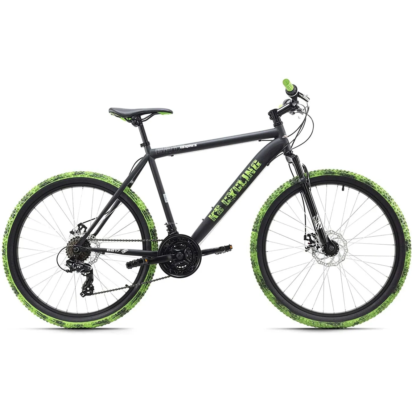 Zawsze gotowy do zabawy na trasie - czarny matowy rower górski CRUSHER firmy KS Cycling zawsze dobrze prezentuje się dzięki dodatkom w kolorze zieleni i efektem „przybrudzenia”. Każdy rower jest absolutnie wyjątkowy.