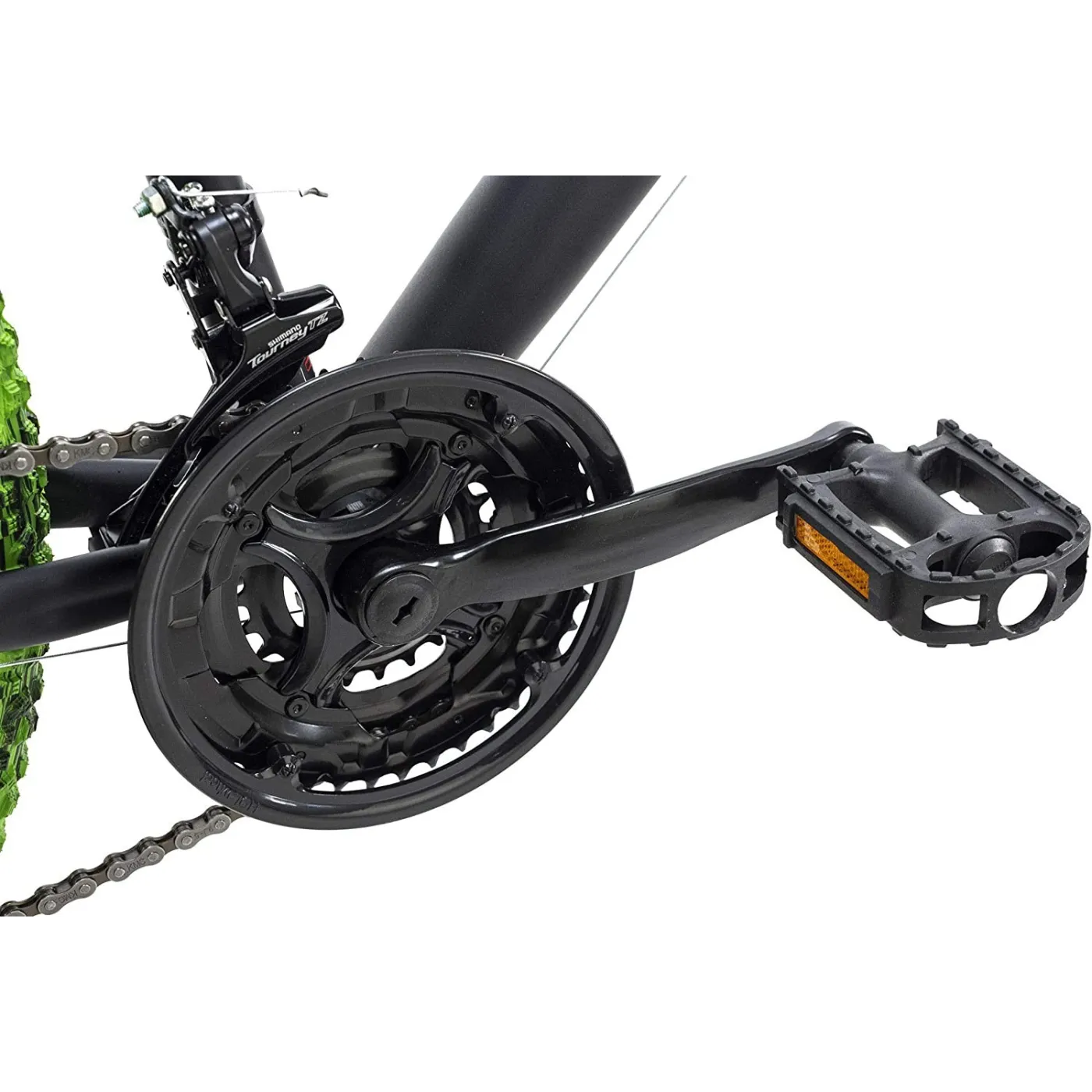 Wyposażony jest w 21-biegową przerzutkę z obrotową manetką oraz mechaniczne hamulce tarczowe z przodu i z tyłu, które zapewniają niezbędne hamowanie. Do tego ergonomiczne siodełko MTB, które idealnie pasuje do całości. obrazu.