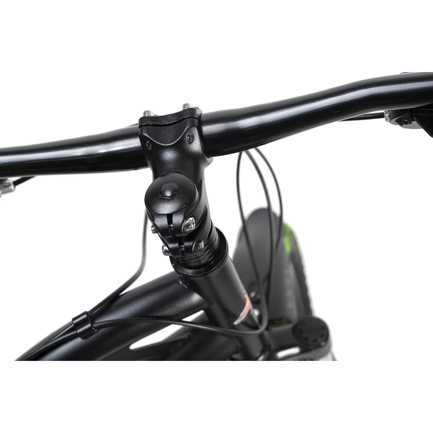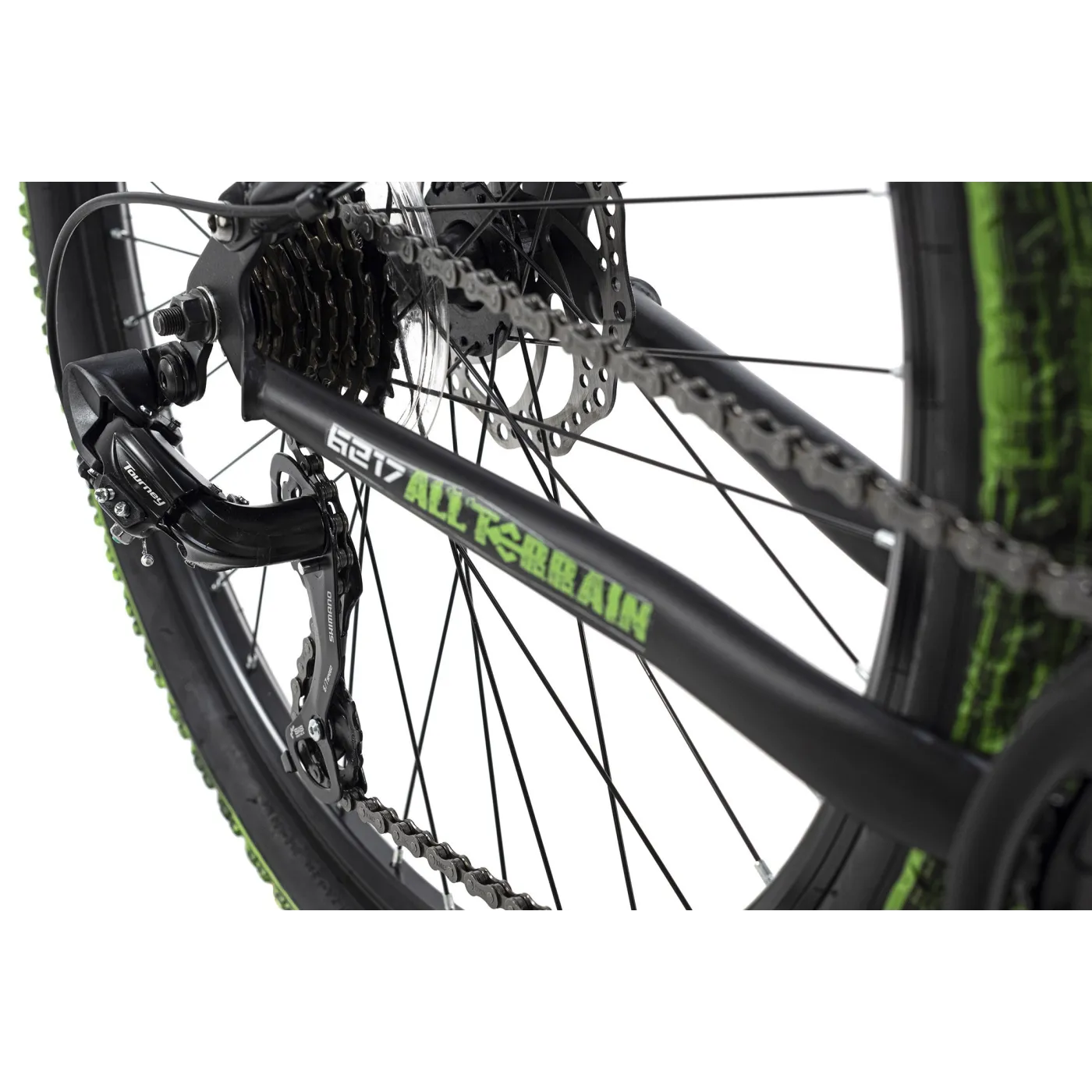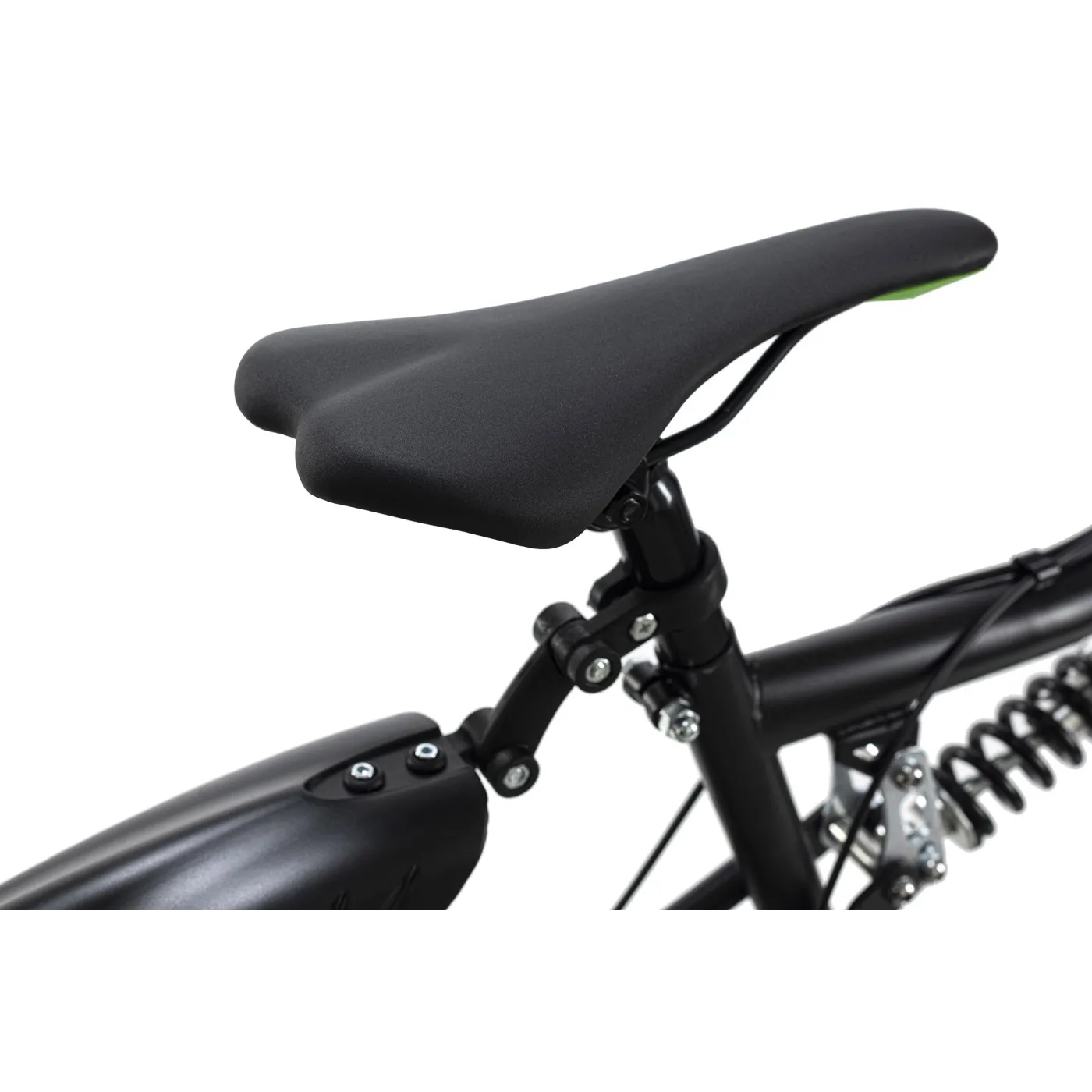 Zawsze gotowy, na nowe wzywania: w pełni amortyzowany MTB CRUSHER od firmy KS Cycling świetnie prezentuje się dzięki nietypowej geometrii ramy i detalom w kolorze neonowej zieleni.