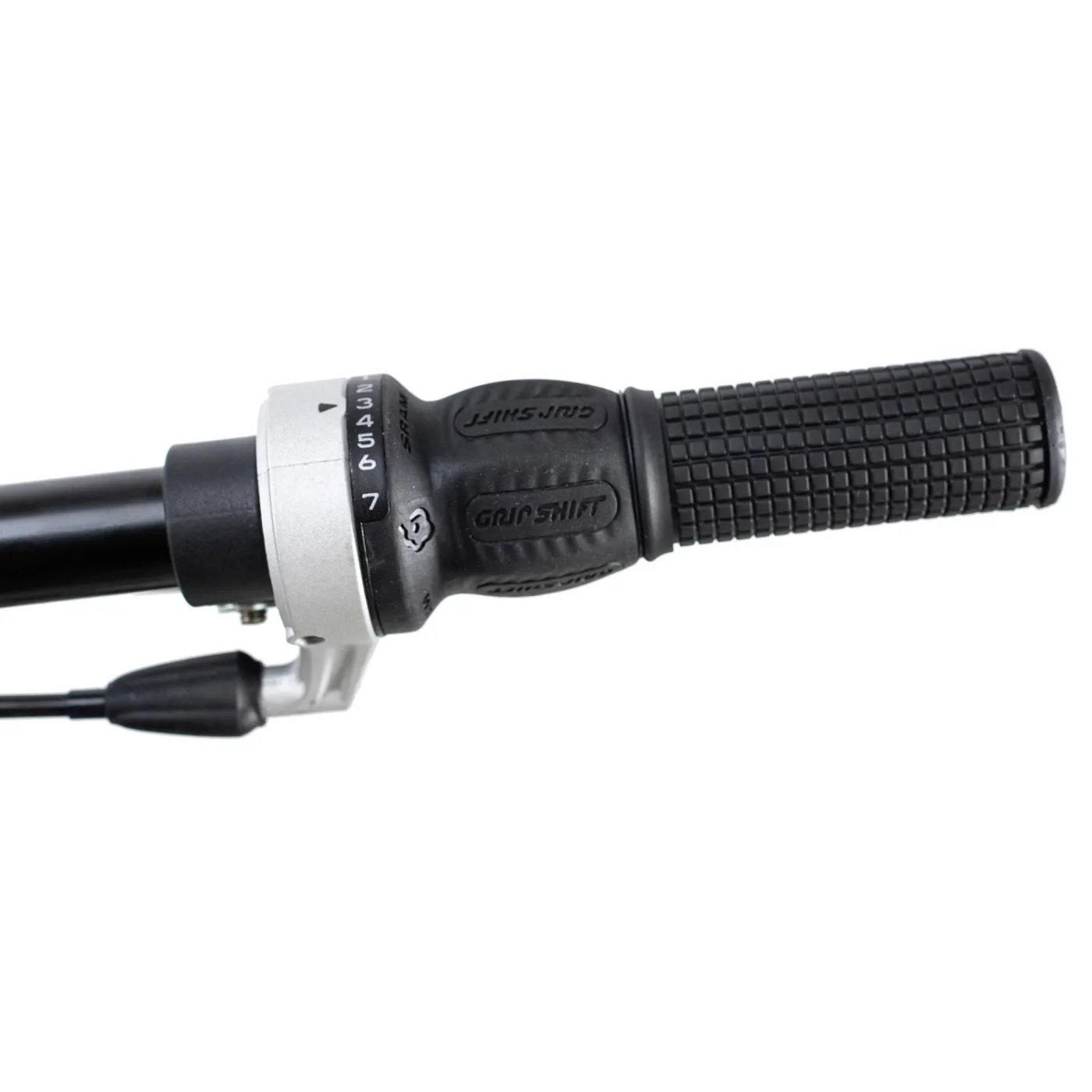 Białe i zielone akcenty na czarnej ramie o ciekawym kształcie oraz opony z białym paskiem przyciągają wzrok. Amortyzowany widelec i tylna regulowana sprężyna świetnie sobie radzą z nierównościami terenu, natomiast 21-biegowy system przerzutek SHIMANO doskonale sprawdzi się podczas wyzwań w terenie. Hamulce typu V-Brake zapewniają bezpieczne hamowanie w każdej sytuacji, a lekko profilowana kierownica sprawia, że masz dobrą kontrolę nad rowerem podczas jazdy.