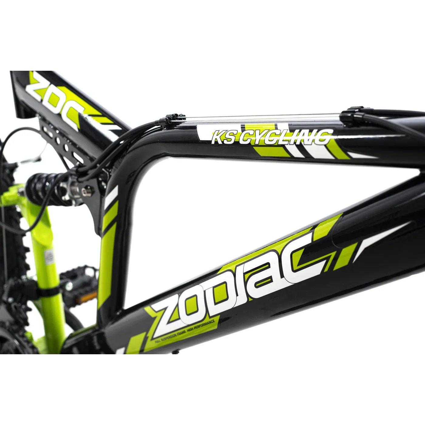 Fajny wygląd w niskiej cenie! Rower górski KS Cycling 26" z pełnym zawieszeniem ZODIAC to idealny rower dla początkujących rowerzystów górskich! Czarna rama, limonkowe akcenty i oczywiście świetny kształt ramy zapewniają atrakcyjny efekt.