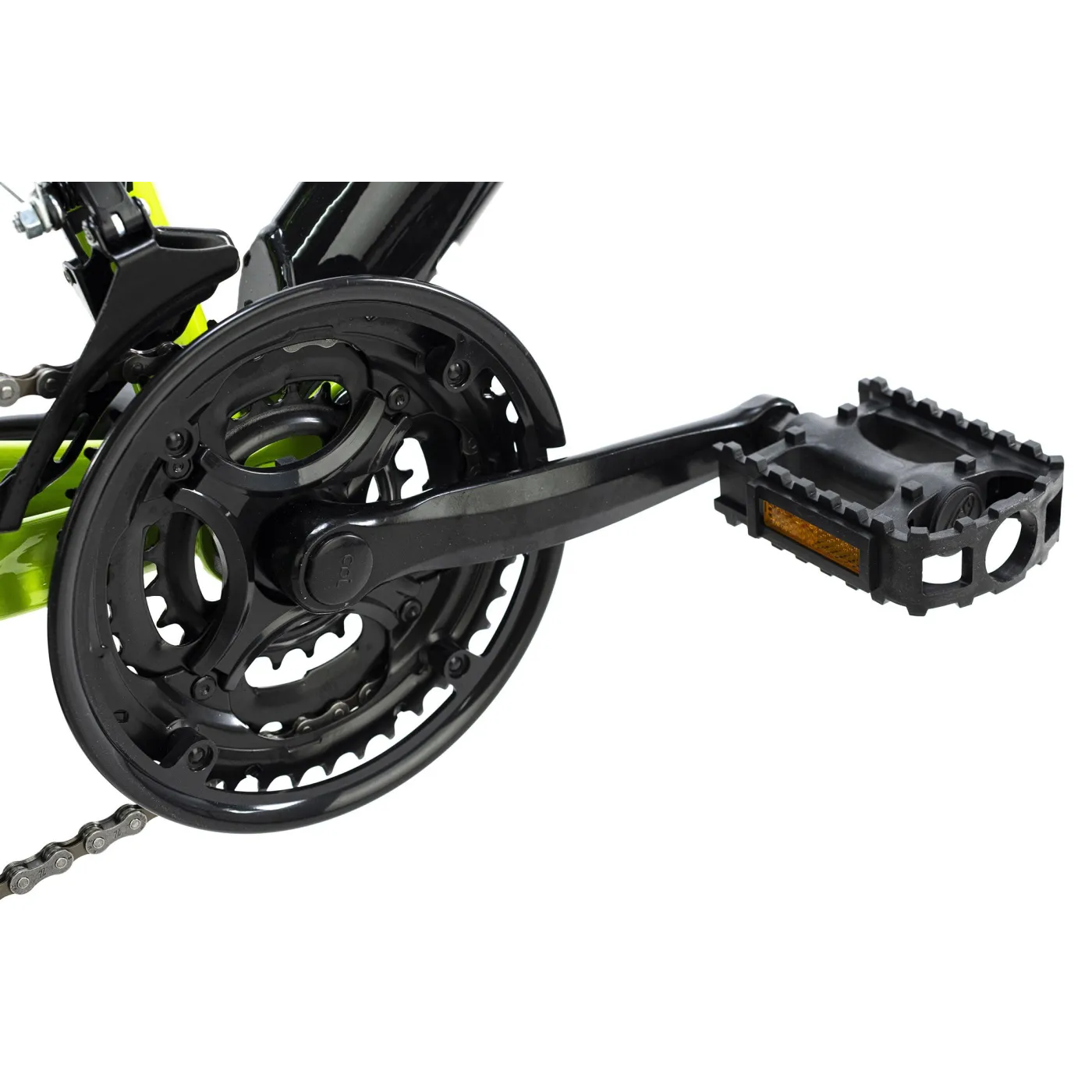 Solidne komponenty, tylne zawieszenie i amortyzowany widelec zapewniają komfort i bezpieczeństwo. Rower górski wyposażony jest w niezawodną 21-biegową przerzutkę z obrotową manetką.