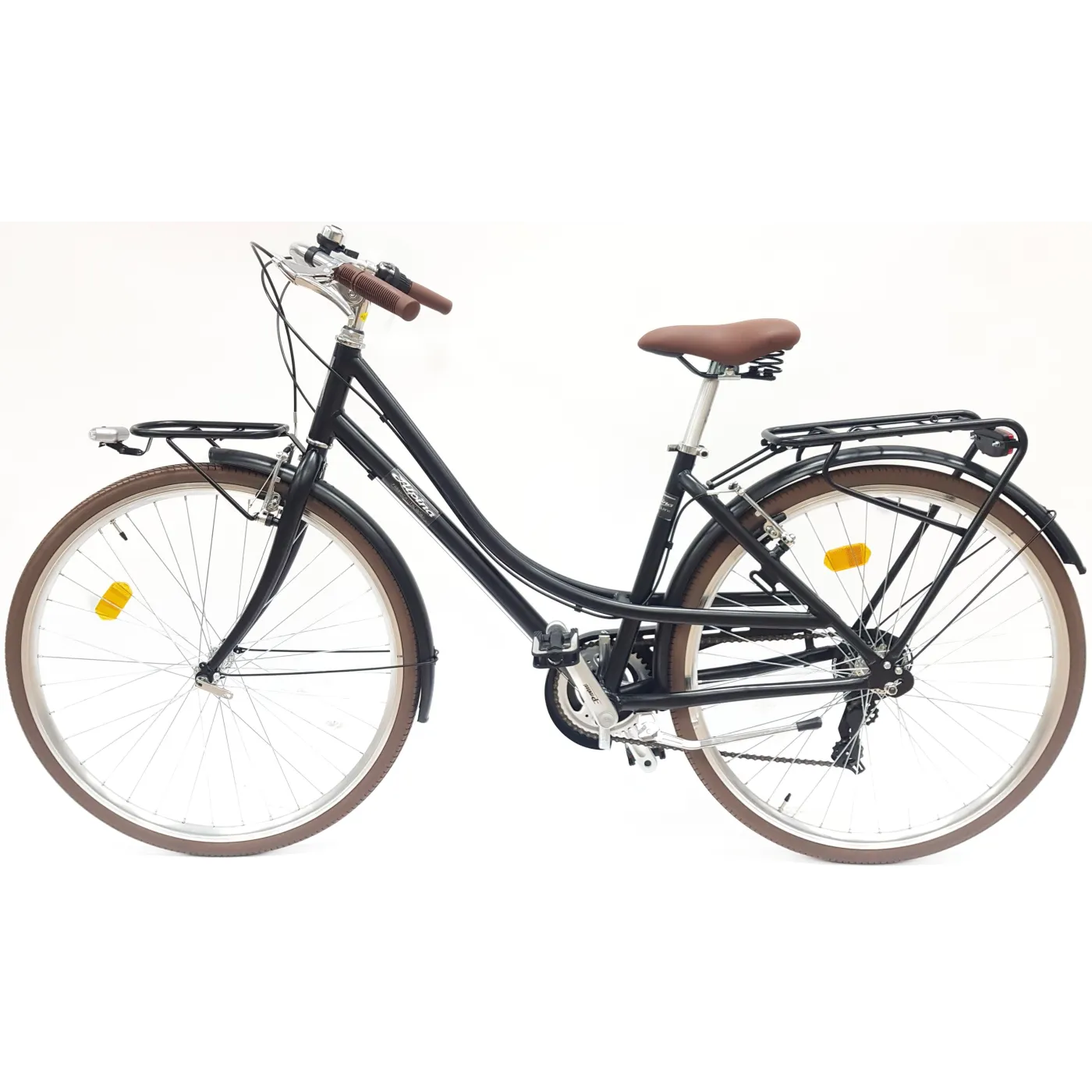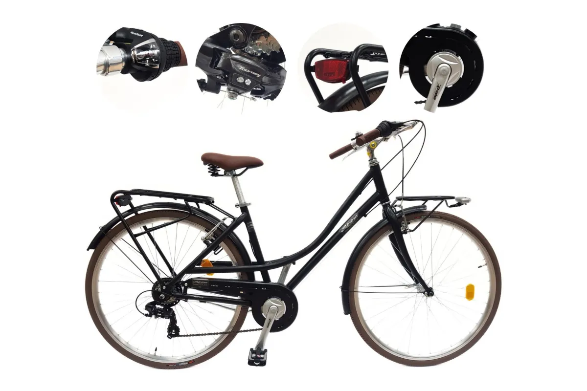 🛠️ Wyposażony w siedem biegów Shimano Revoshift, ten rower zapewnia płynne przełączanie między biegami, co pozwala na łatwe dostosowanie prędkości do warunków drogowych. Dodatkowo, jego wbudowane błotniki i bagażnik są praktycznym rozwiązaniem dla każdego rowerzysty.