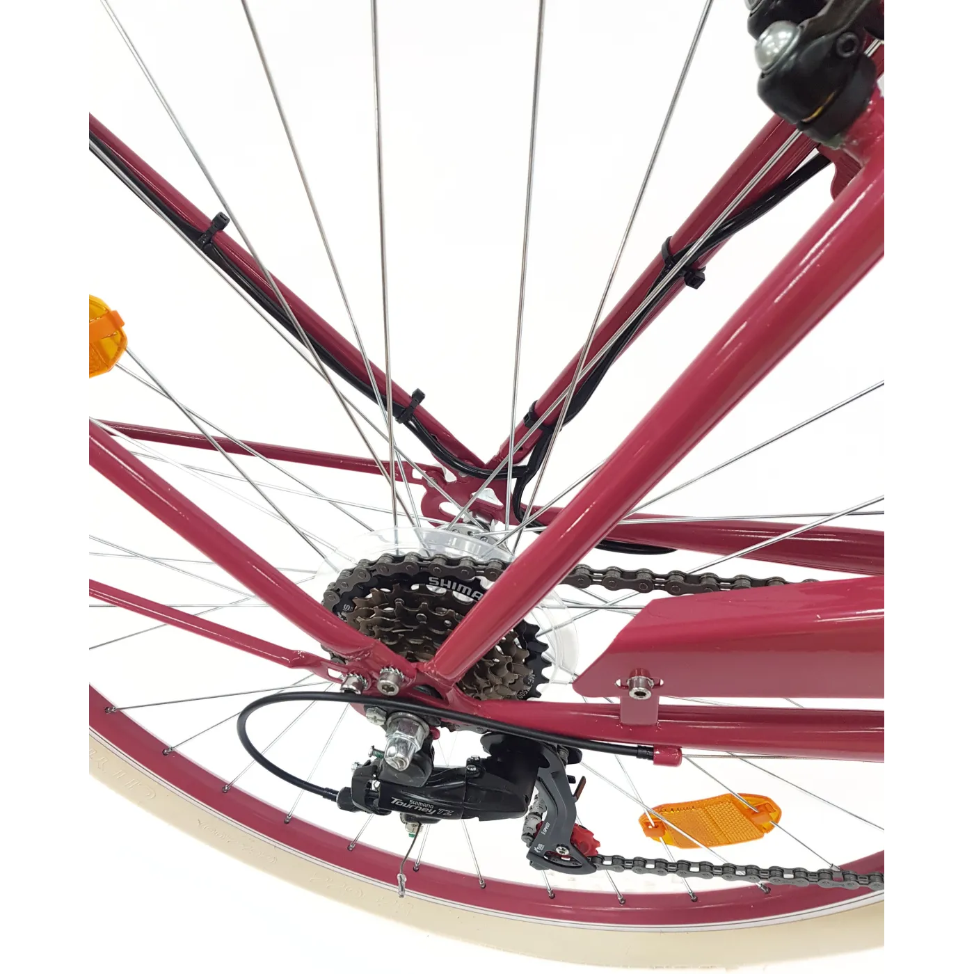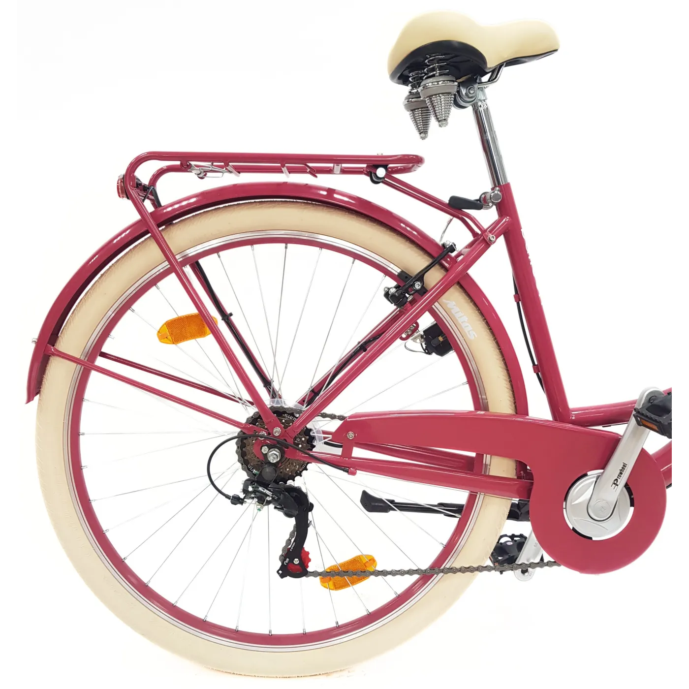 Jeśli marzysz o komfortowej jeździe i chcesz się poczuć jak w podróży między chmurami, dobrze trafiłaś! Oto rower miejski Balloon, który charakteryzuje się specyficznymi oponami z zawieszeniem pneumatycznym, które łagodzą wszelkie wstrząsy i nierówności terenu! Dzięki temu wycieczki rowerowe staną się jeszcze bardziej przyjemne i komfortowe. Ponadto rower posiada 6-biegowe przerzutki Revoshift oraz pozwalające na bezpieczne hamowanie, hamulce V-Brake. Ponadto wyrazista malinowa rama z jasnymi dodatkami, idealnie dopełnia całość.