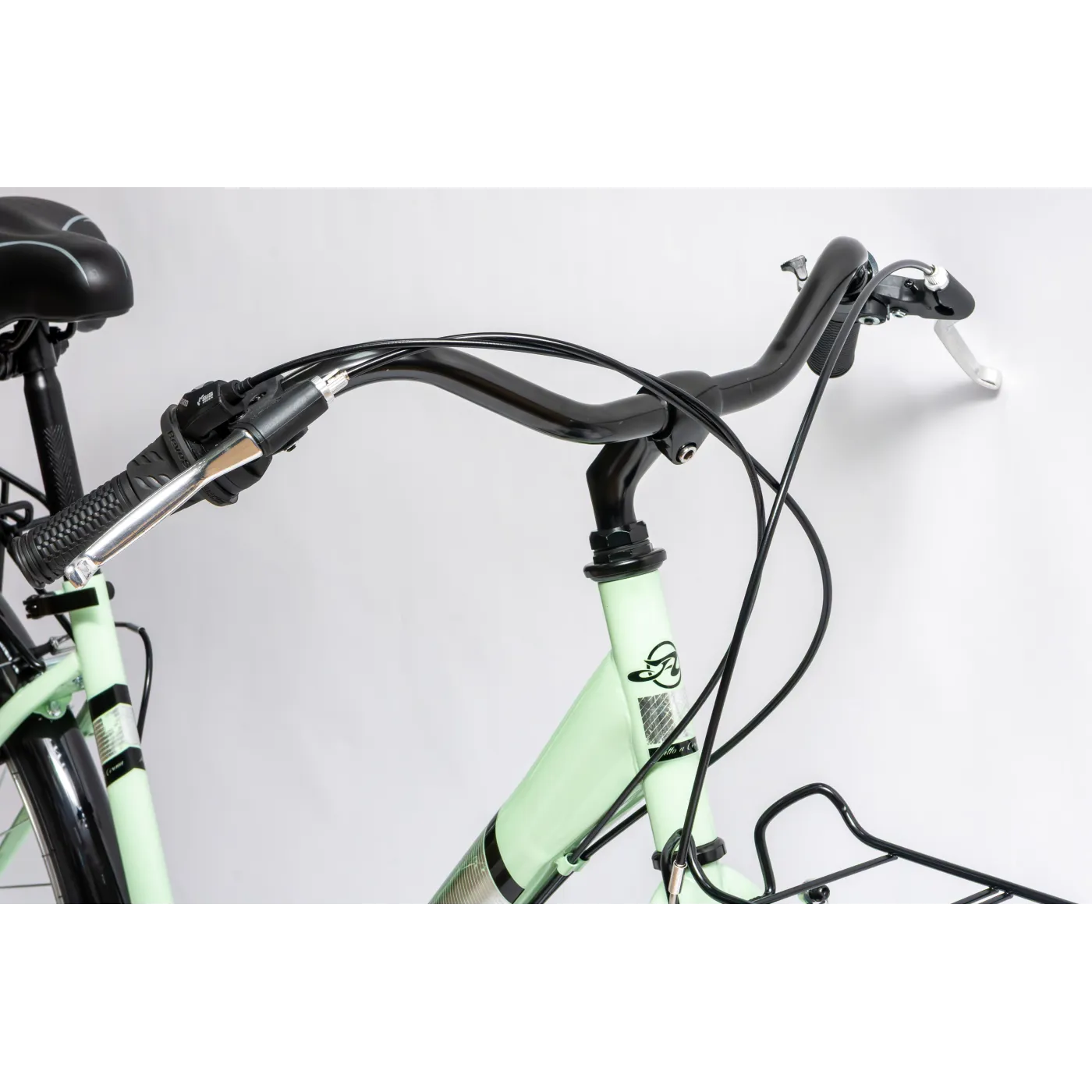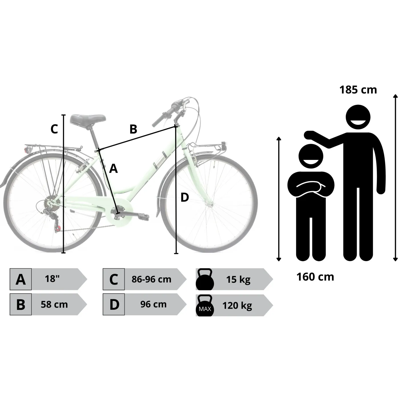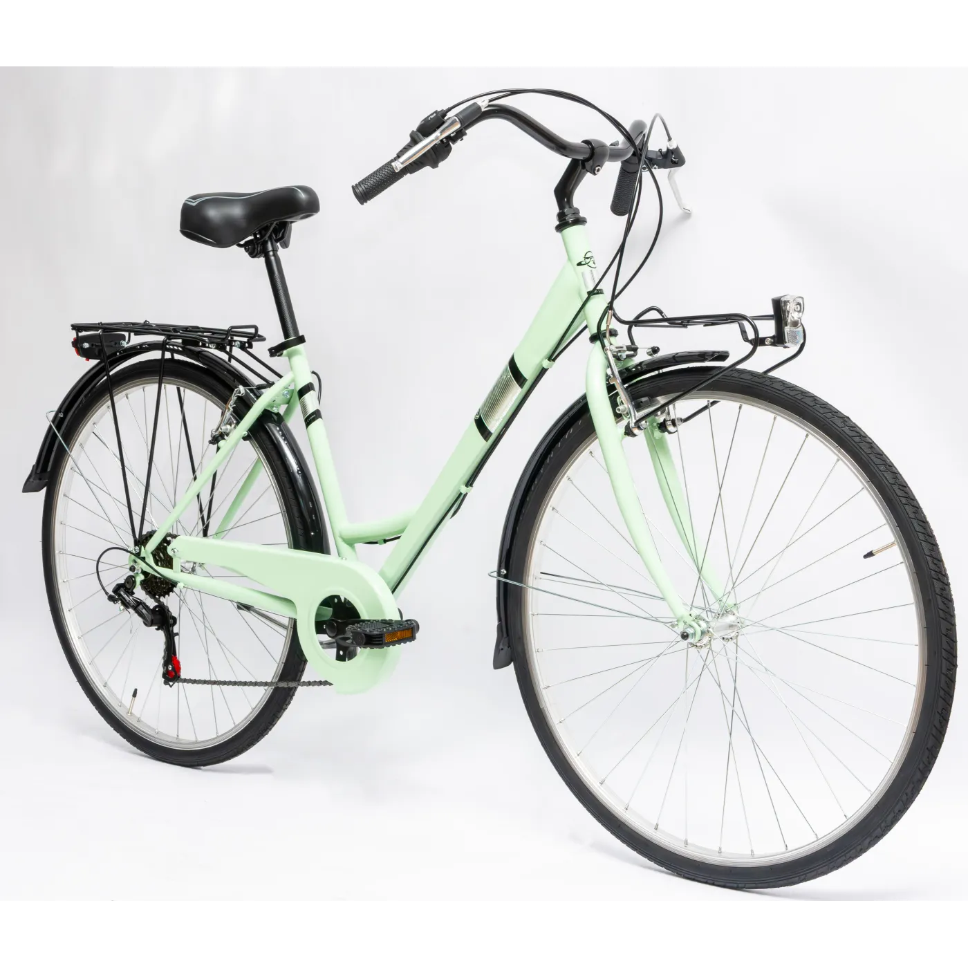 🌿 Stalowa rama w eleganckim, zielonym kolorze to nie tylko klasyczny wygląd, ale także trwałość i niezawodność. Dzięki wytrzymałej konstrukcji rower doskonale sprawdza się zarówno w miejskim zgiełku, jak i na dłuższych trasach poza miastem. Geometria ramy została zaprojektowana z myślą o komforcie, zapewniając wygodną, wyprostowaną pozycję podczas jazdy.