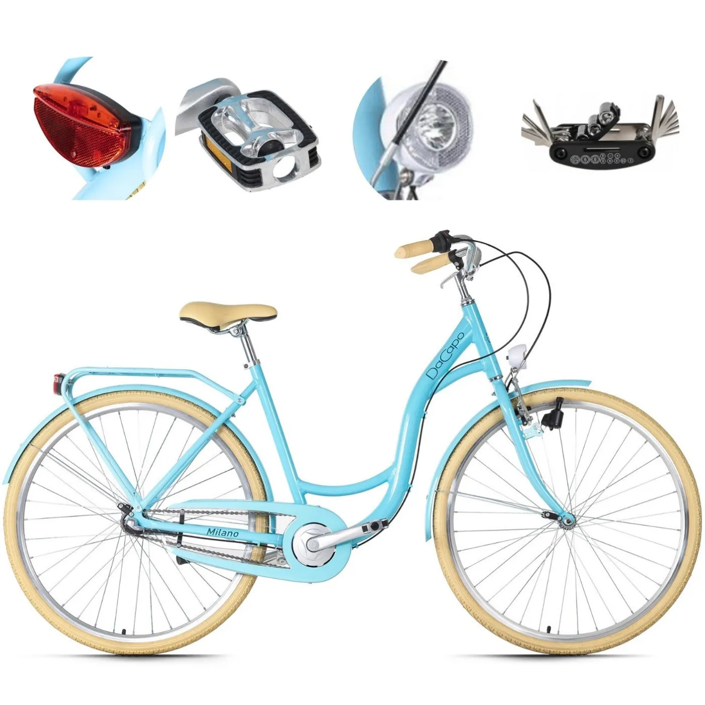 👌 Warto zwrócić uwagę na dodatkowe elementy wyposażenia tego modelu, takie jak dzwonek, światła oraz odblaski, które zwiększają bezpieczeństwo rowerzysty podczas poruszania się po zmroku czy w złych warunkach atmosferycznych. Dzięki nim, użytkownik jest widoczny dla innych uczestników ruchu drogowego, co zapewnia komfort oraz bezpieczeństwo jazdy.