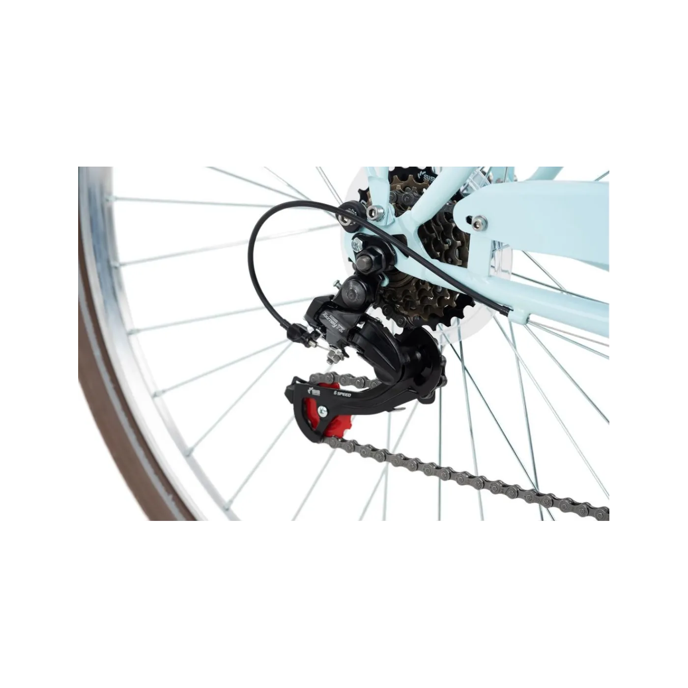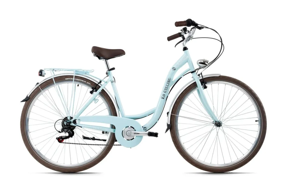 KS Cycling przedstawia rower miejski z 6-biegową przerzutką do swobodnej jazdy po drogach utwardzonych. Pastelowa rama łączy się z odcieniem, a do tego uchwyty, siodełko i opony w kolorze ciemnobrązowym nadają rowerowi damskiemu CASINO niepowtarzalny wygląd retro. Rower wyposażony został w bagażnik, nóżkę, osłonę łańcucha oraz reflektory, czyli we wszystko, co jest potrzebne do odbywania zarówno dłuższych, jak i krótszych wycieczek.